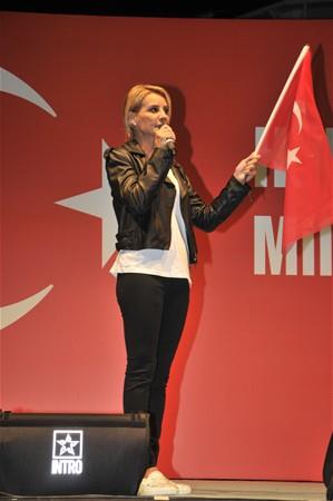 Hadise; "Burada aranızda olmaktan çok gurur duyuyorum. Kendisini vatanımız için feda eden bütün şehitlerimize Allahtan rahmet ve yakınlarına hepimize sabır diliyorum. Çok zor bir dönem geçiriyoruz ama biz çok güçlü bir toplumun evlatlarıyız. Bunu da atlatacağız eminim. Hepinizi çok seviyorum ve Cumhurbaşkanımıza çok teşekkür ediyorum bizleri koruduğu ve sevdiği için" ifadelerini kullandı.