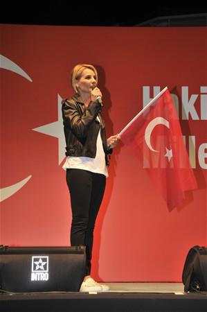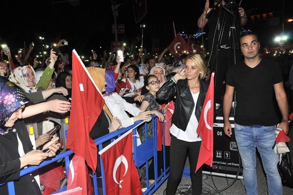 Rıdvan Dilmen de; 1980 yılında darbeyi gördüğünü belirterek, "Allahım demi bir daha inşallah darbeler olmaz. Çok şükürler olsun ki büyük liderimiz Sayın Cumhurbaşkanımız önderliğinde özellikle vatandaşlarımızın katkısıyla önlendi. Allah çocuklarımıza torunlarımıza göstermesin. Şehitlerimize rahmet diliyorum. Gazilerimize de sağlıklar diliyorum. Benim Sayın Cumhurbaşkanımızdan bir ricam olacak. Boğaziçi Köprüsünün adının Şehitler Köprüsü olarak değişip tarihe geçmesini rica ediyorum" dedi. Göksel Gümüşdağ da konuşmasının ardından Hadise'den istiklal Marşı'nı okumasını istedi. Sahnede hep birlikte İstiklal Marşı okundu.