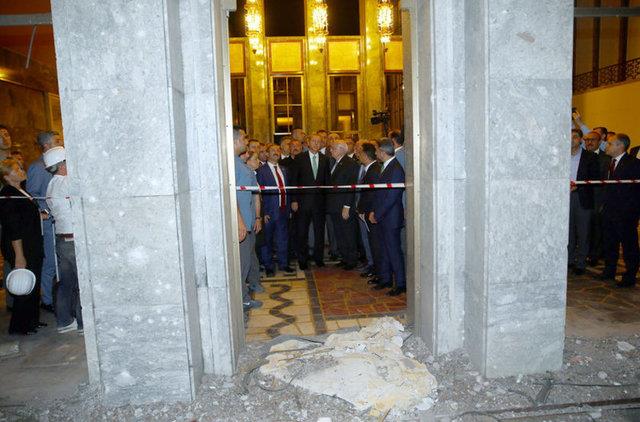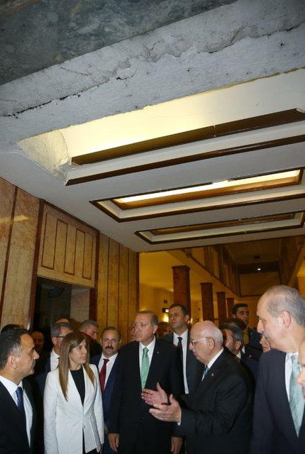 Cumhurbaşkanı Recep Tayyip Erdoğan, 15 Temmuz'da meydana gelen darbe girişiminde darbeci askerler tarafından bombalanan ve hasar gören TBMM'yi ziyaret etti.