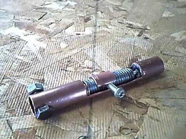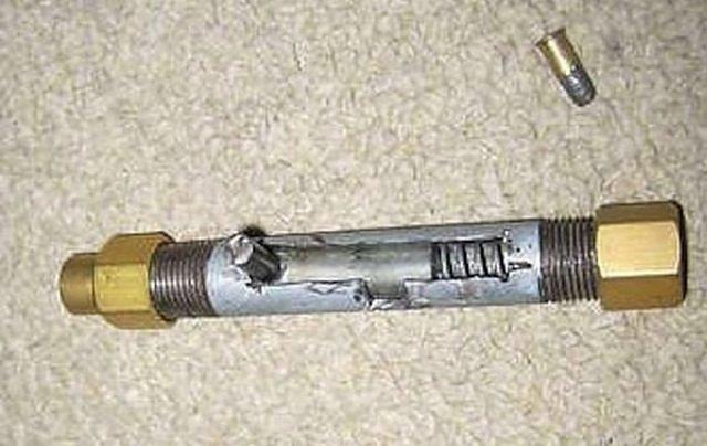 Yatak demir ayakları, bant ve piller kullanılarak yapılan pompalı tüfek. 2 mahkum bu silahı kullanarak hapishaneden kaçmayı başarmış.