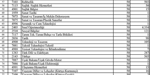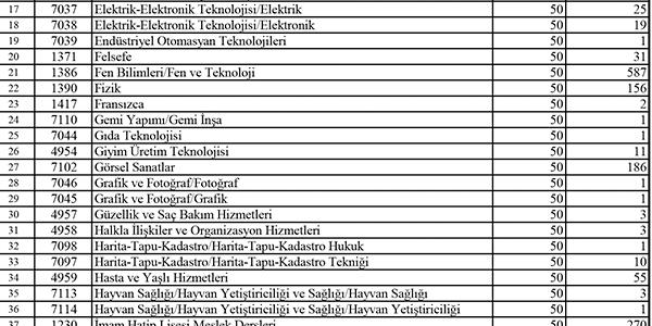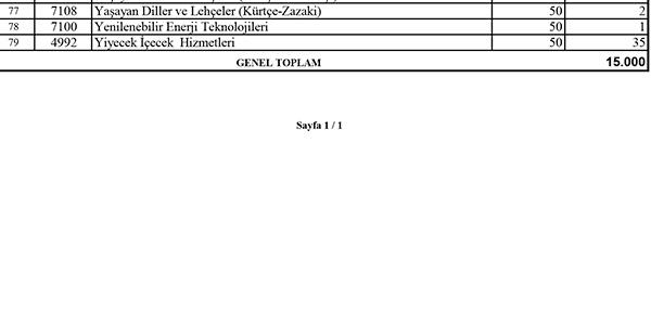 İşte kontenjan listesi