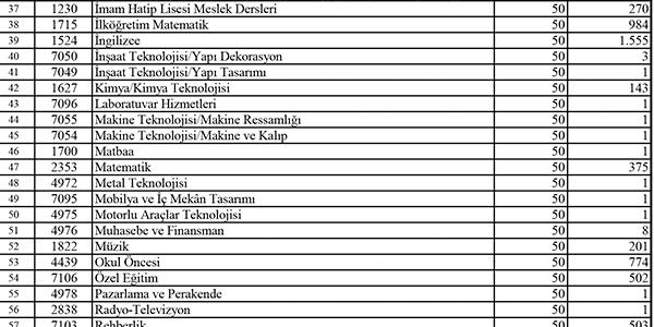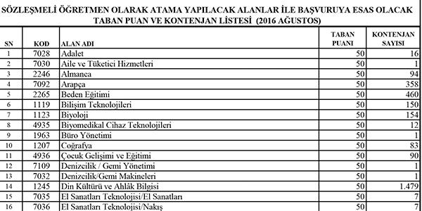 Sözleşmeli Öğretmen Kontenjan Listesi
