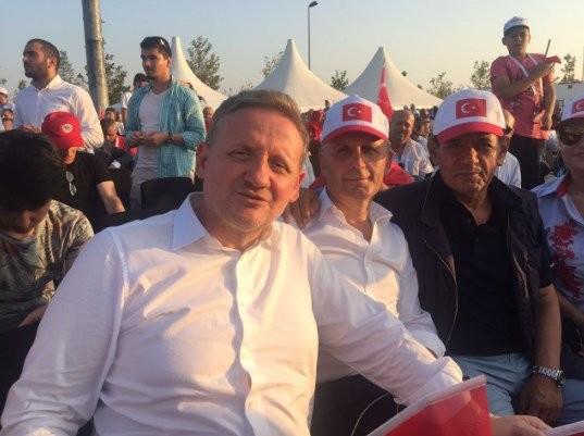 Spor camiası da Yenikapı'daki tarihi mitingde yerini aldı. G.Saray Başkanı Dursun Özbek ve Trabzonspor Başkanı Muharrem Usta bir arada.. -