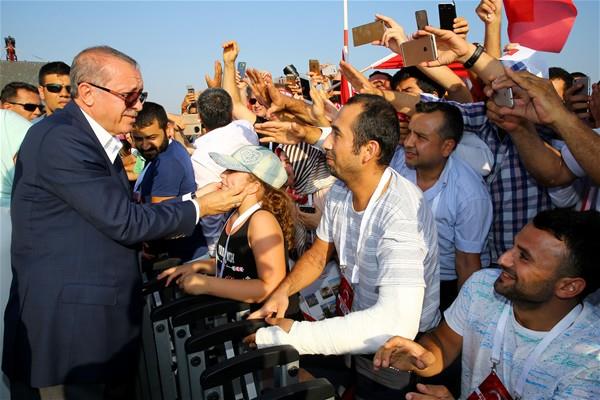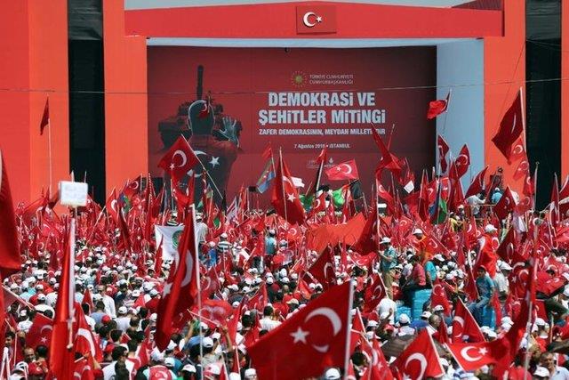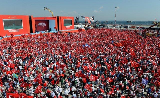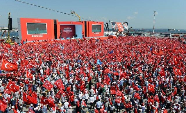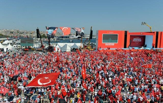 Cumhurbaşkanlığı himayesinde, İstanbul Valiliği ve Büyükşehir Belediyesi desteğiyle düzenlenen "Demokrasi ve Şehitler Mitingi", Yenikapı Miting Alanı'nda gerçekleştirildi. Kimi vatandaşlar miting alanına vapurlar ve teknelerle geldiler.
