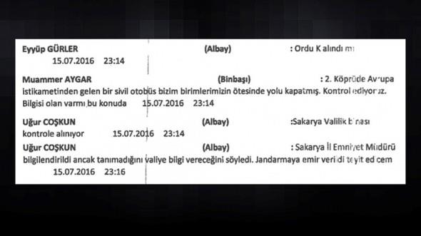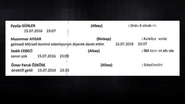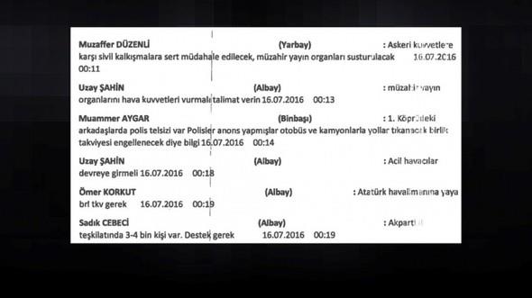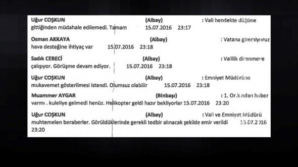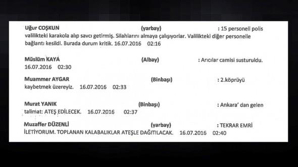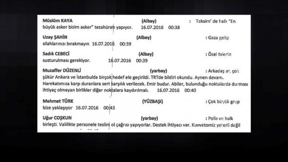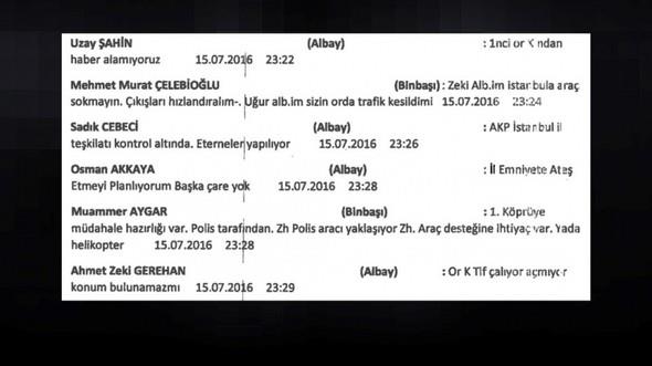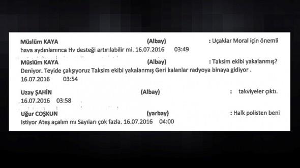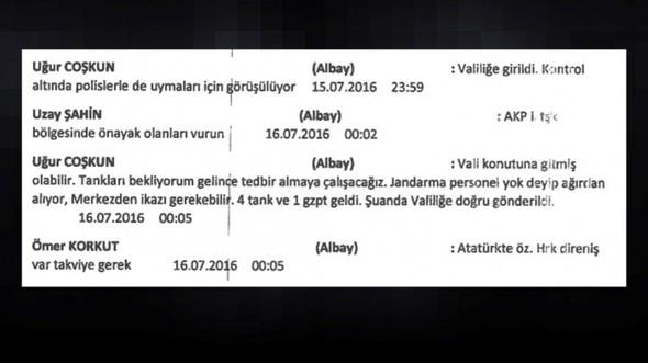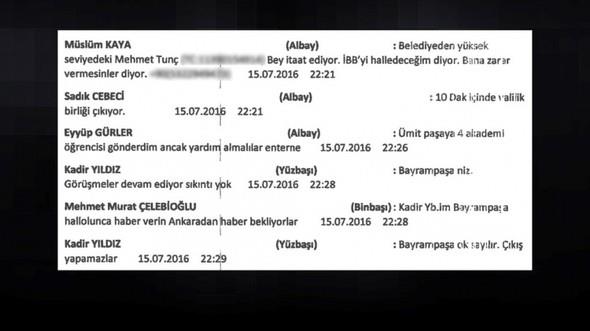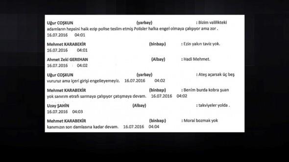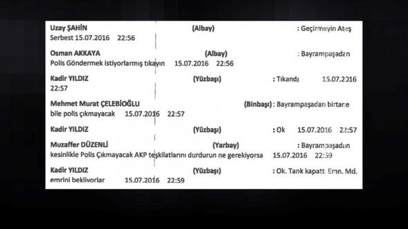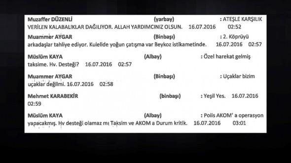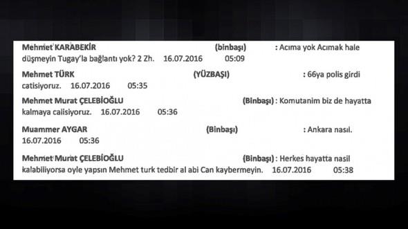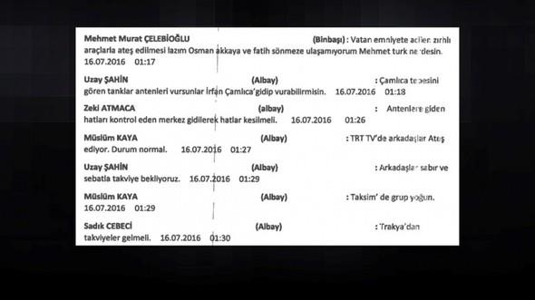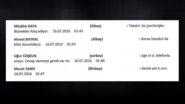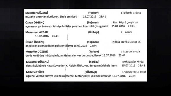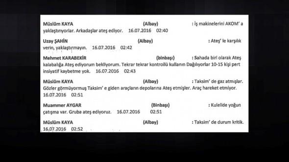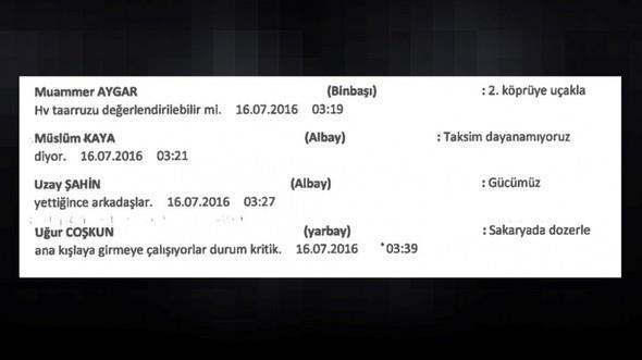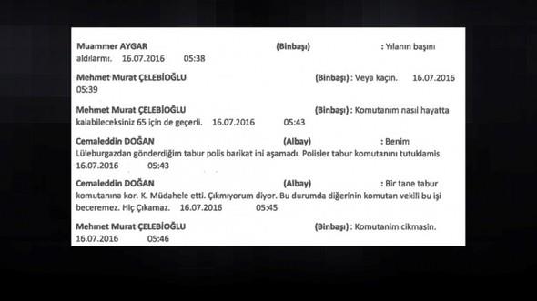 İstanbul'da bulunan darbeci askerlerin 15 Temmuz gecesi nasıl hareket ettikleri, darbe adı altında masum vatandaşları nasıl katlettikleri "WhatsApp" üzerinden dakika dakika yaptıkları yazışmalara yansıdı.