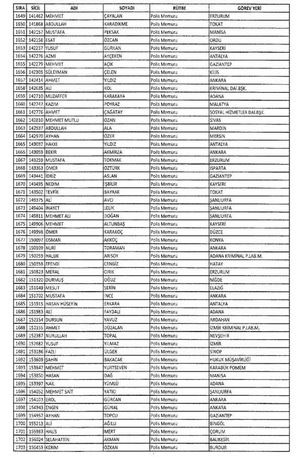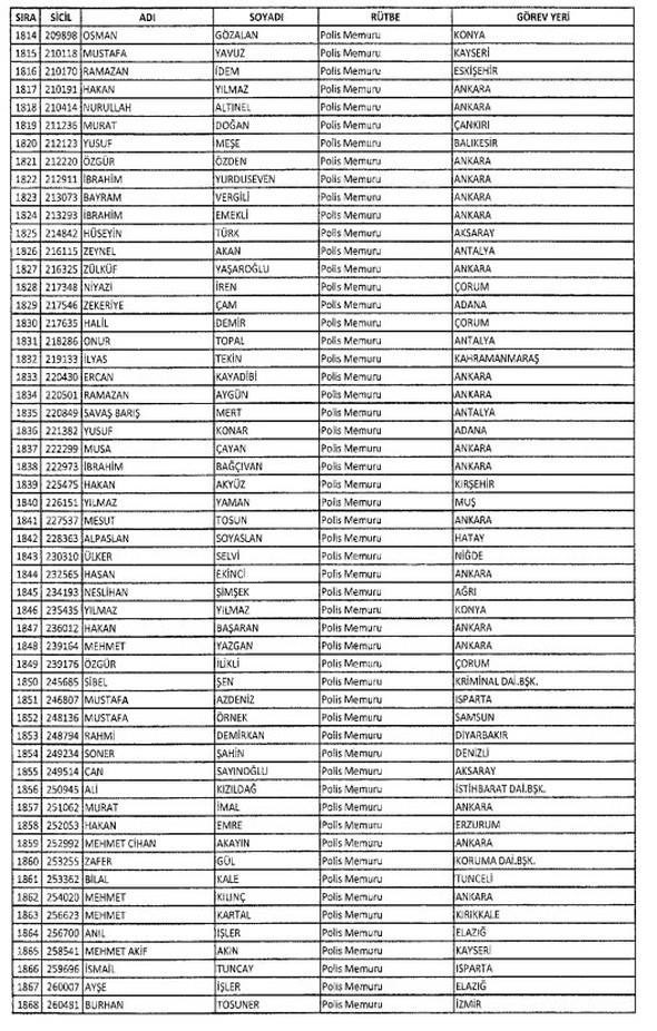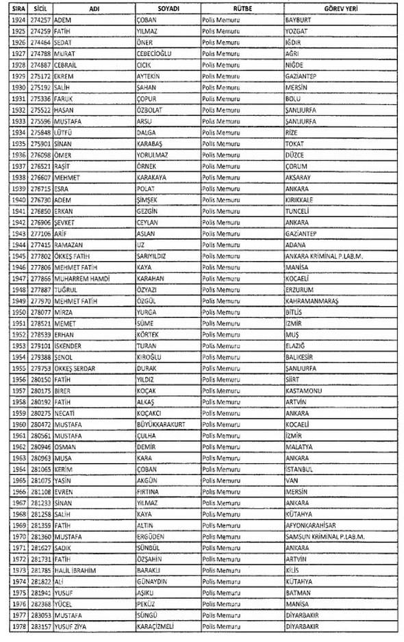 İhraç edilen askerler polisler ve memurlar tam listesi 17.08.2016 Resmi Gazete
