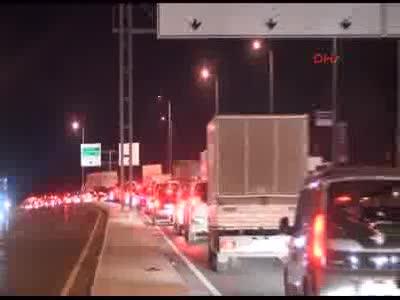 Yavuz Sultan Selim Köprüsü'nde ilk trafik kazası meydana geldi.