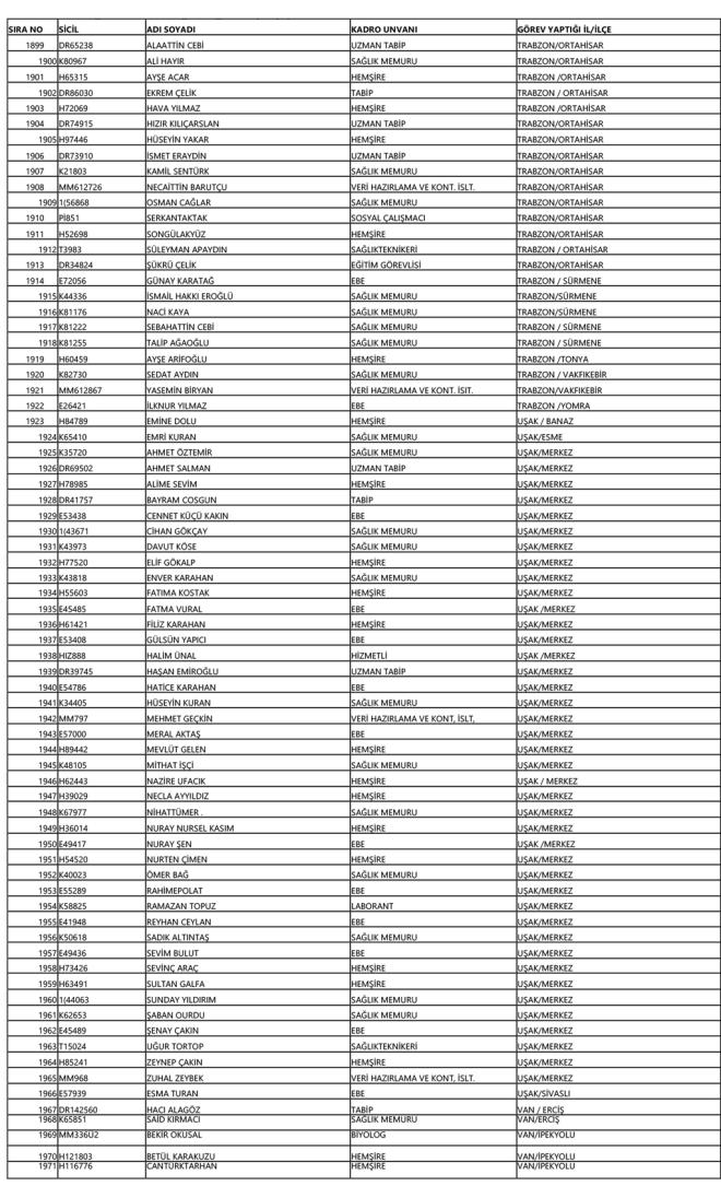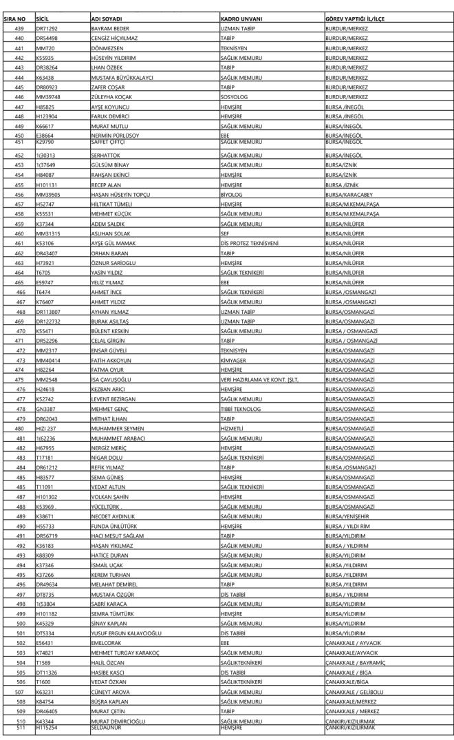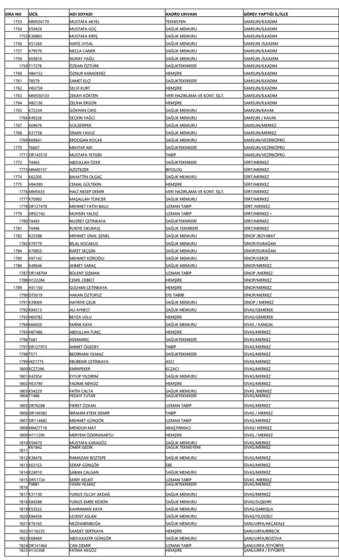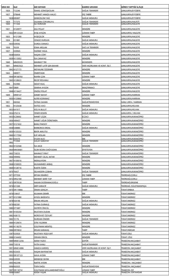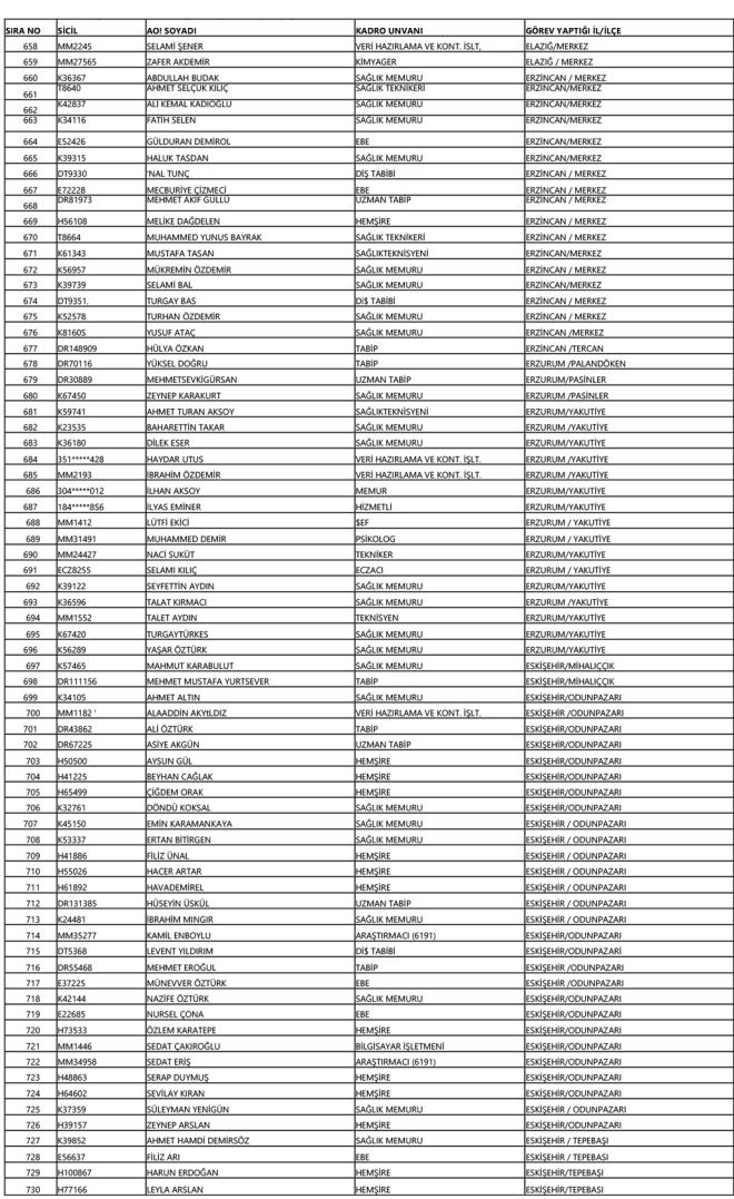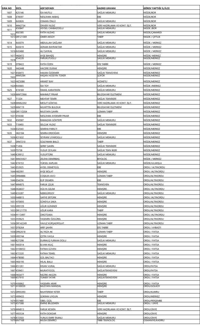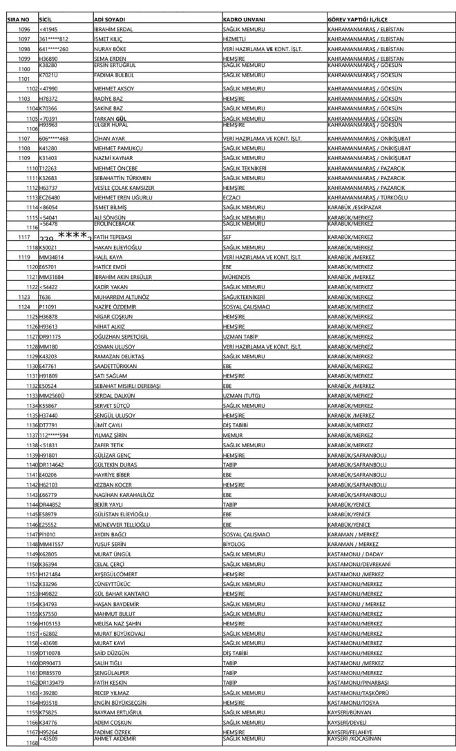 Sağlık Bakanlığı'ndan İhraç Edilenlerin İsim İsim Tam Listesi