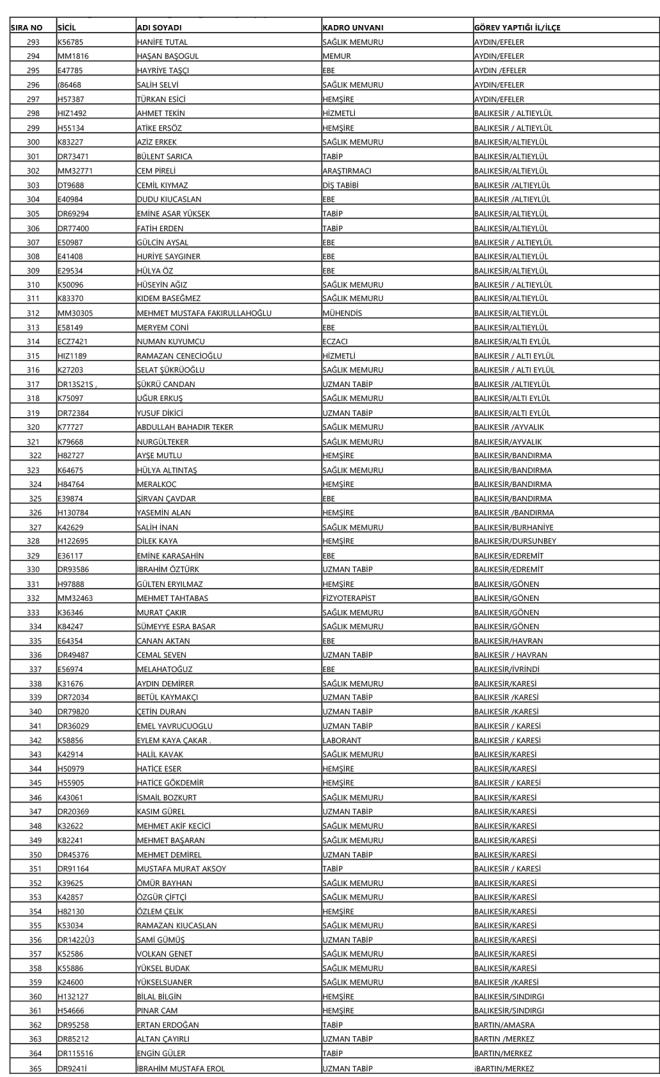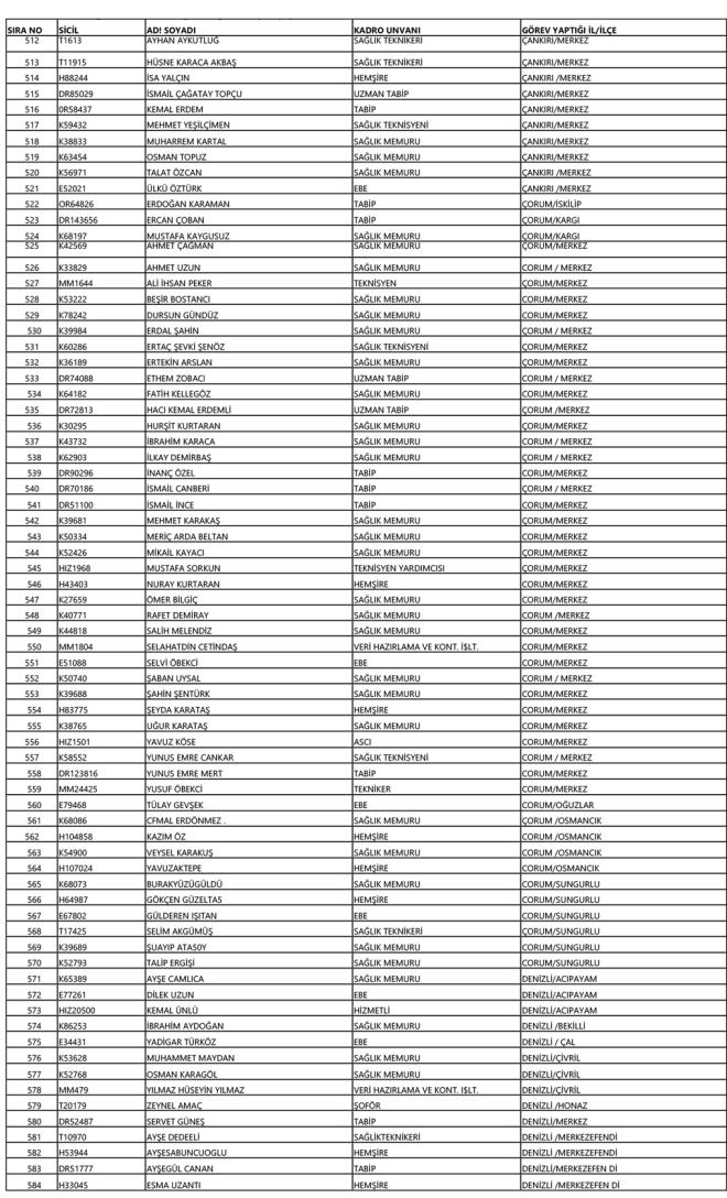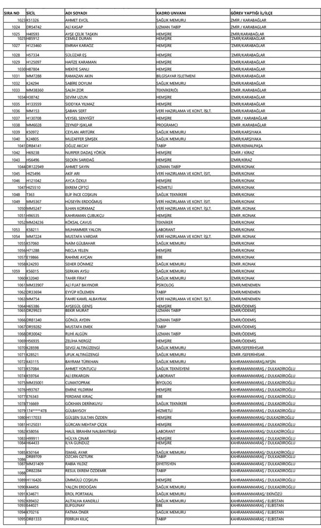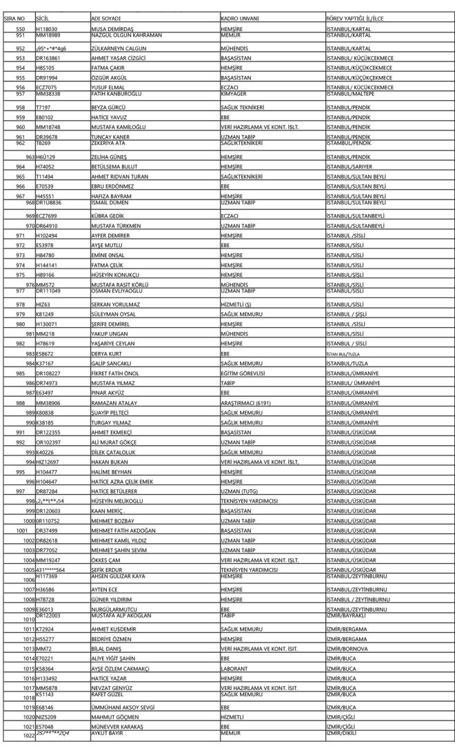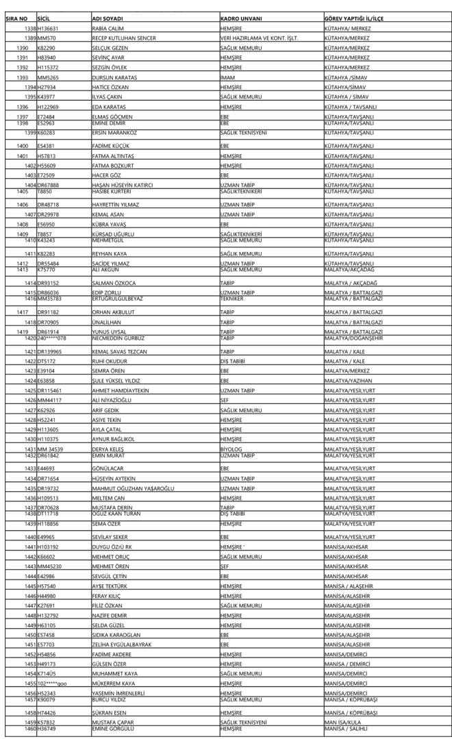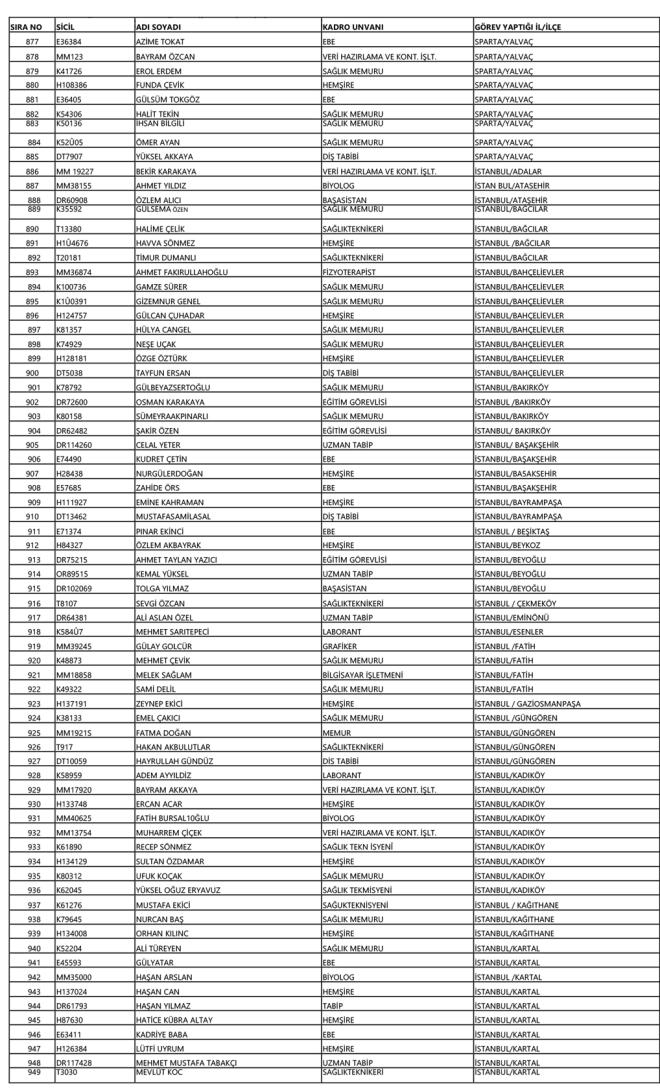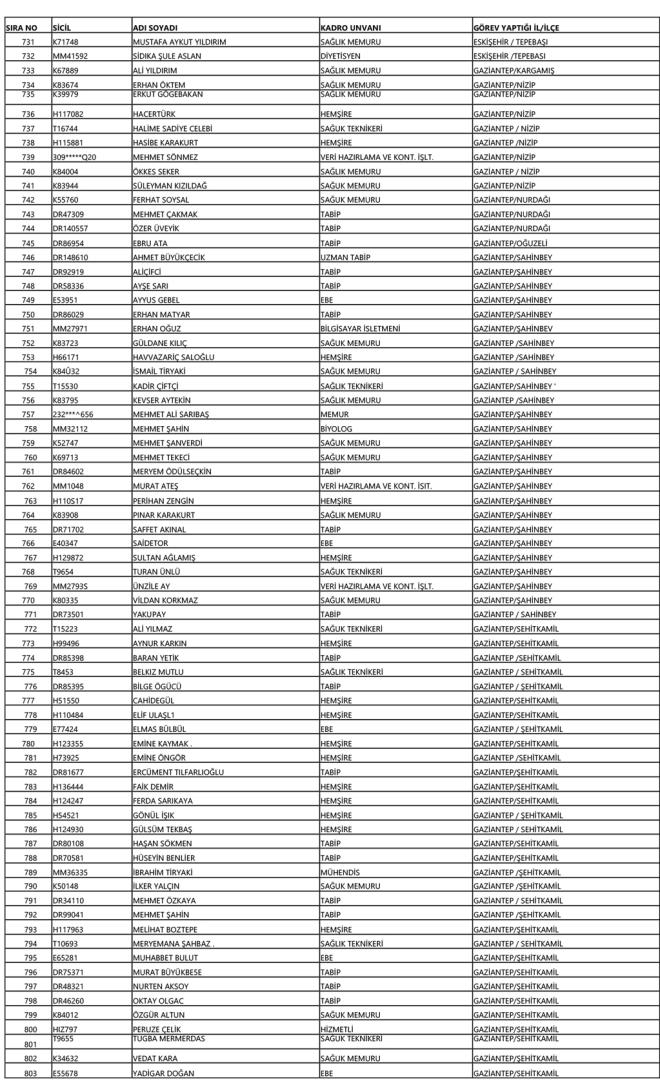 Sağlık Bakanlığı'ndan İhraç Edilenlerin İsim İsim Tam Listesi