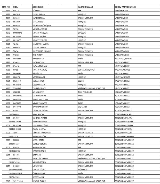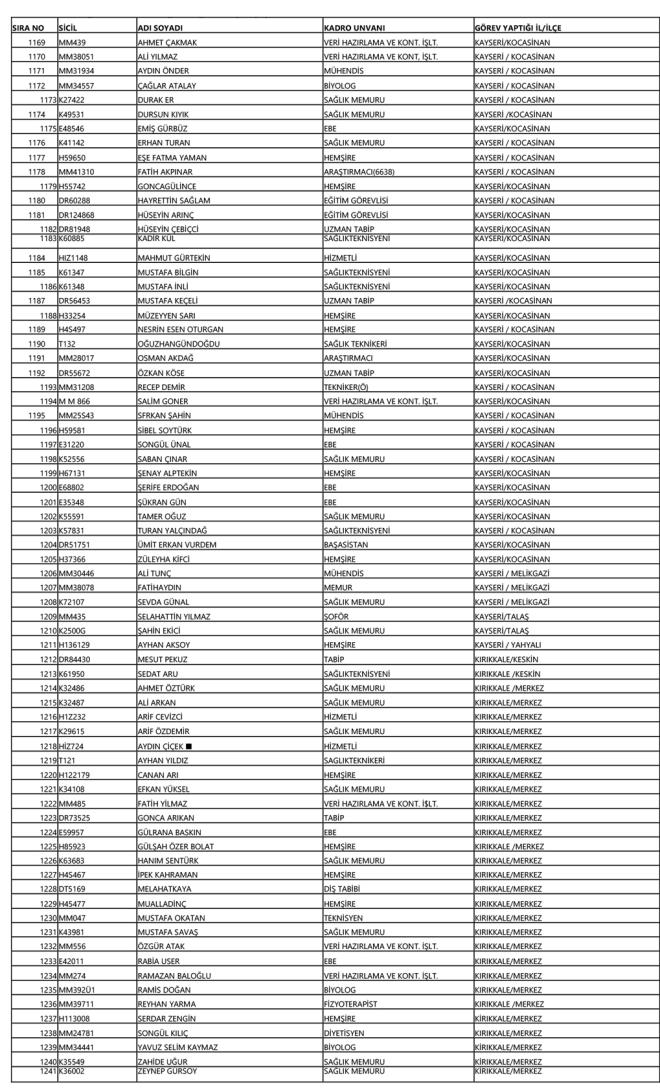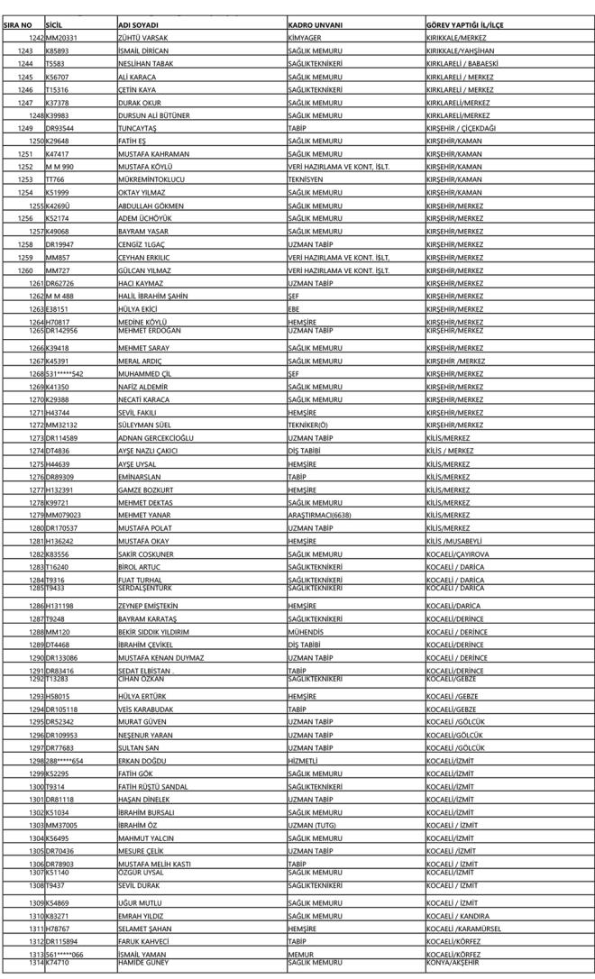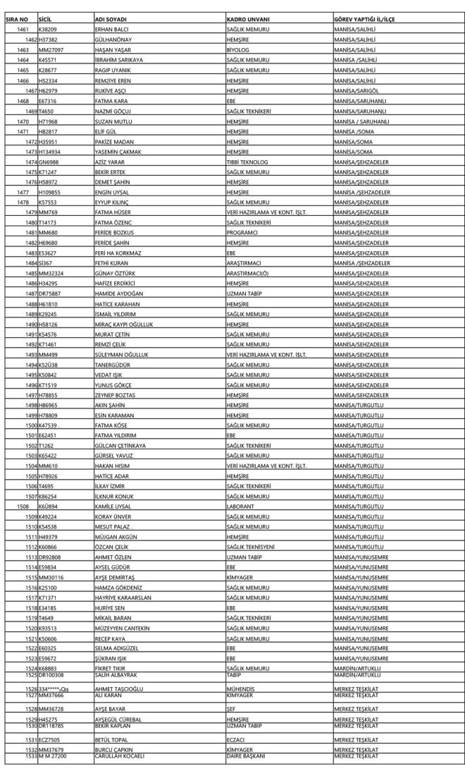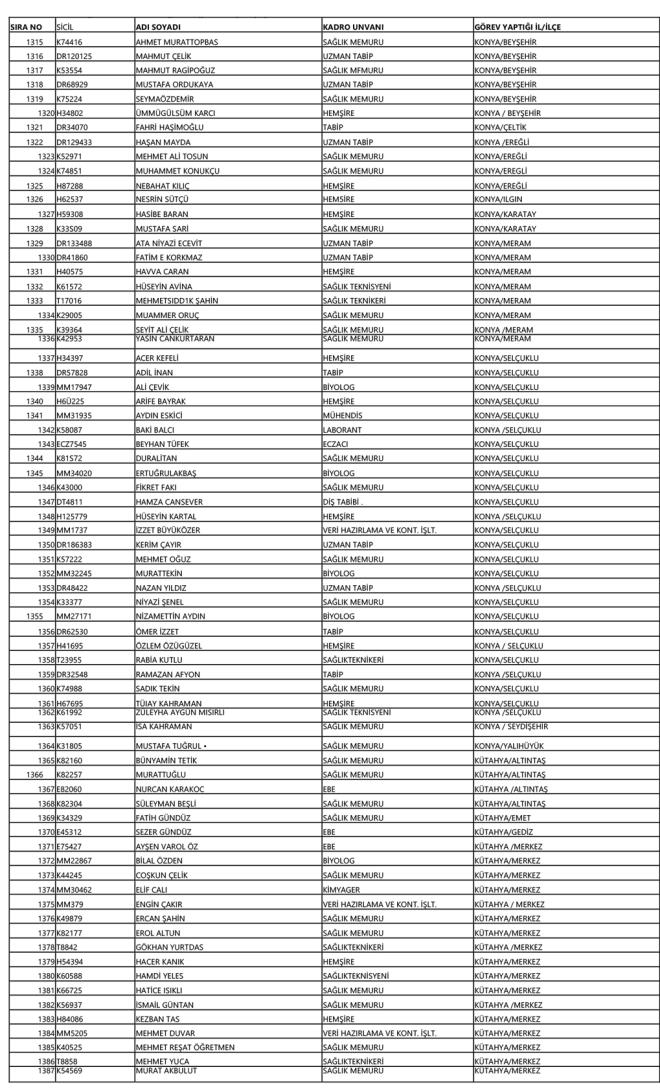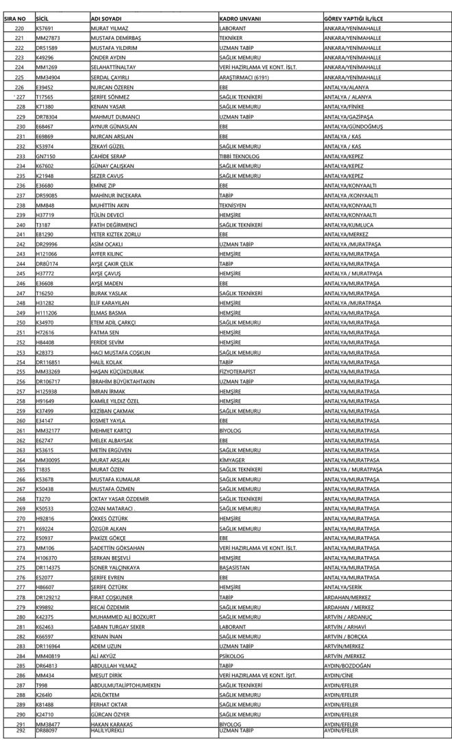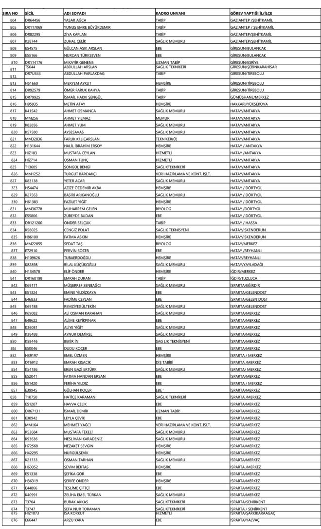 Sağlık Bakanlığı'ndan İhraç Edilenlerin İsim İsim Tam Listesi