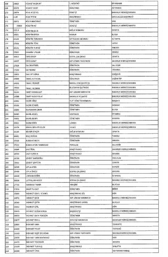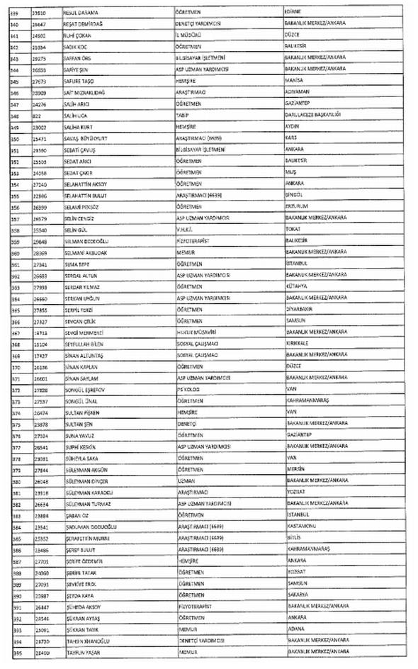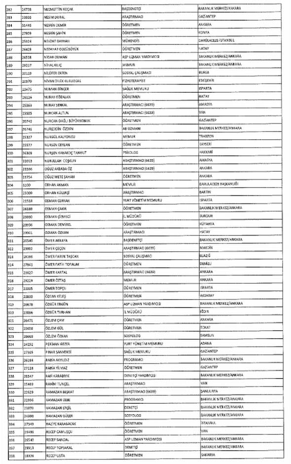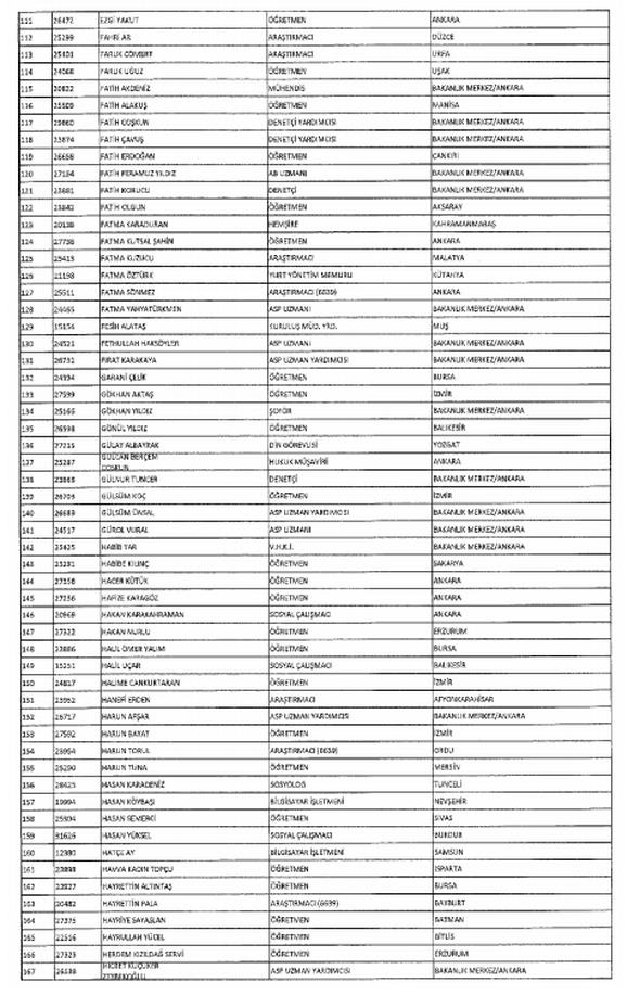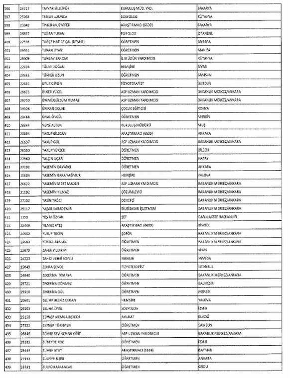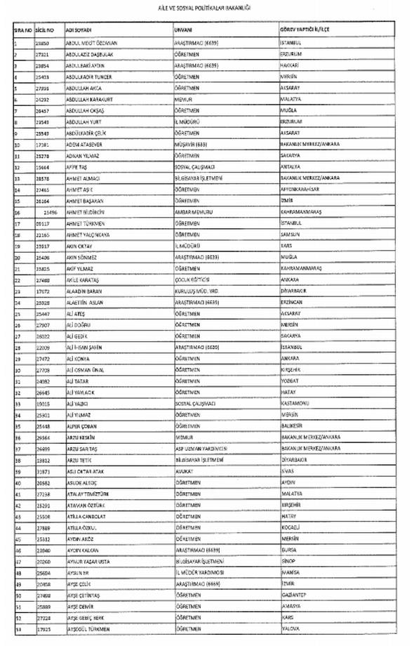 Aile Bakanlığı'ndan İhraç Edilenlerin İsim İsim Tam Listesi