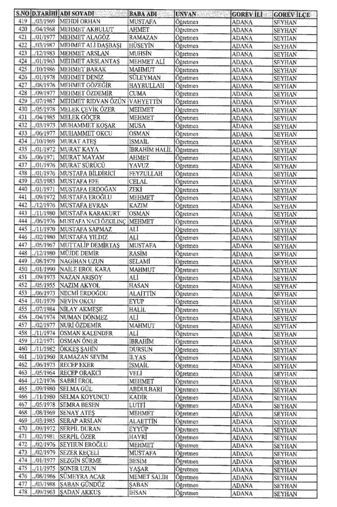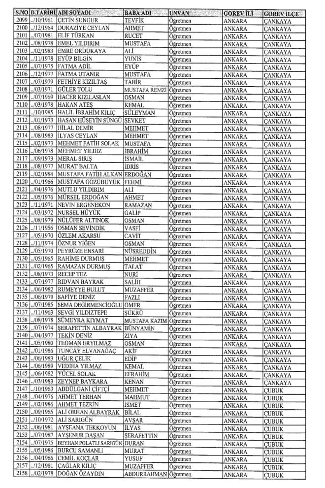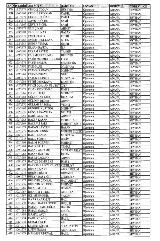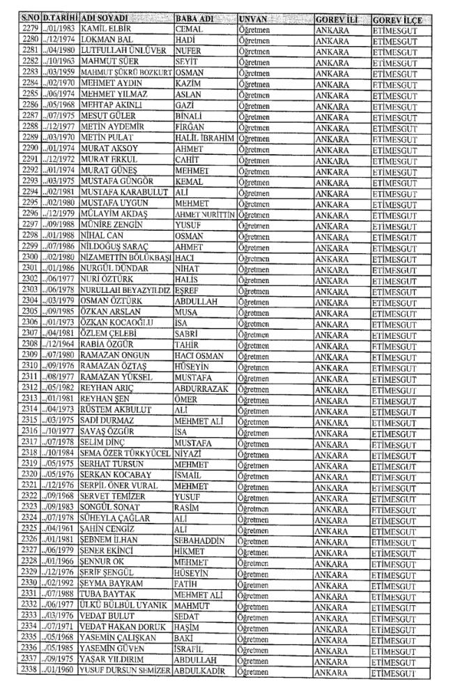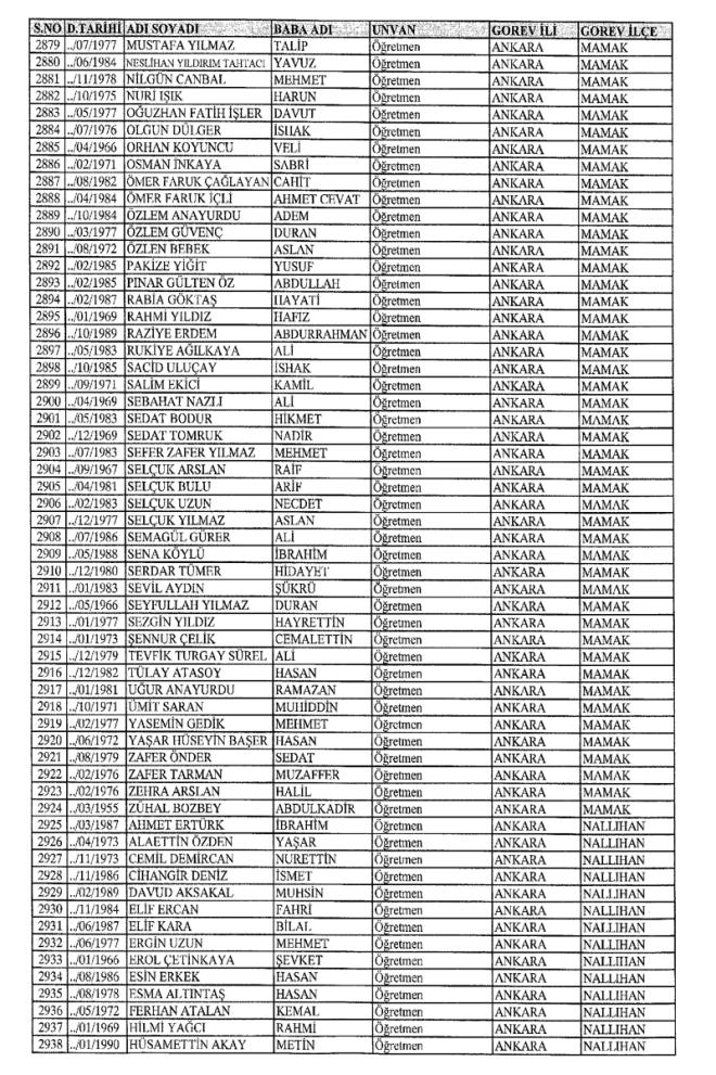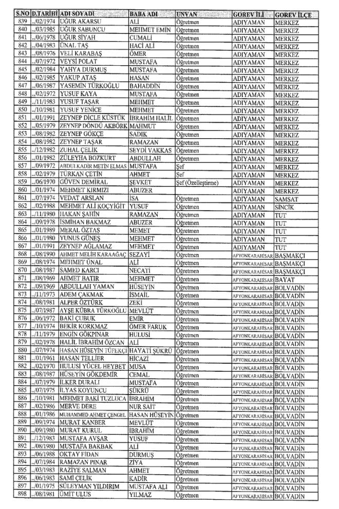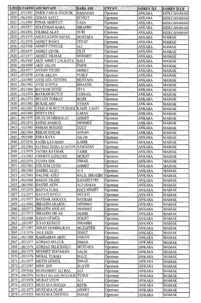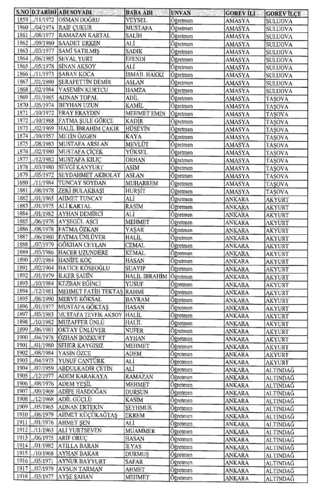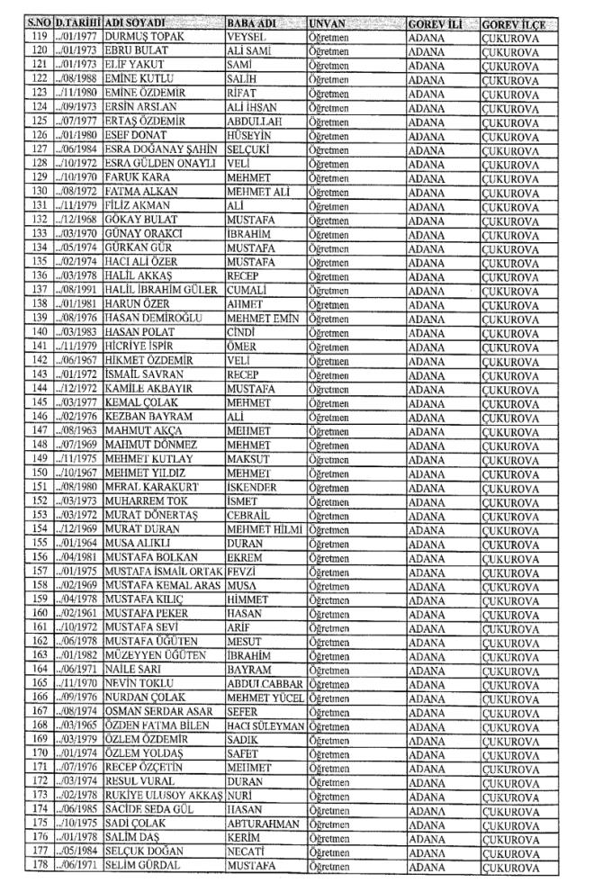 MEB'den İhraç Edilenlerin İsim İsim Tam Listesi