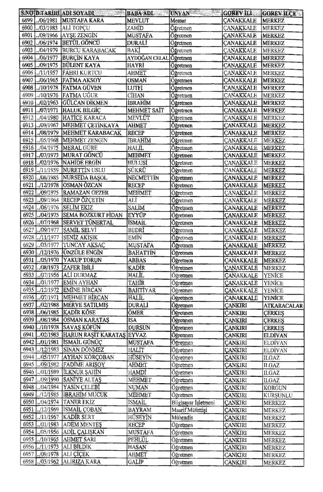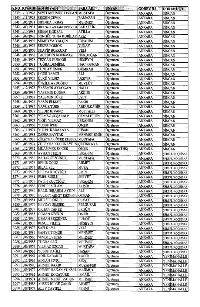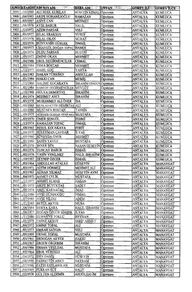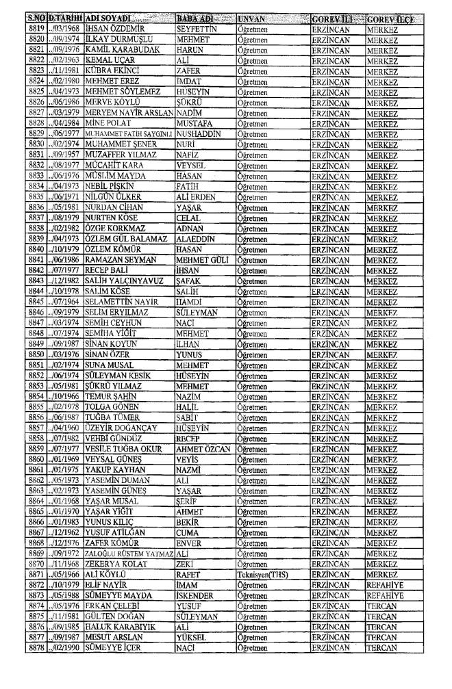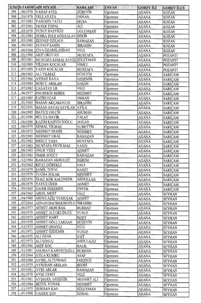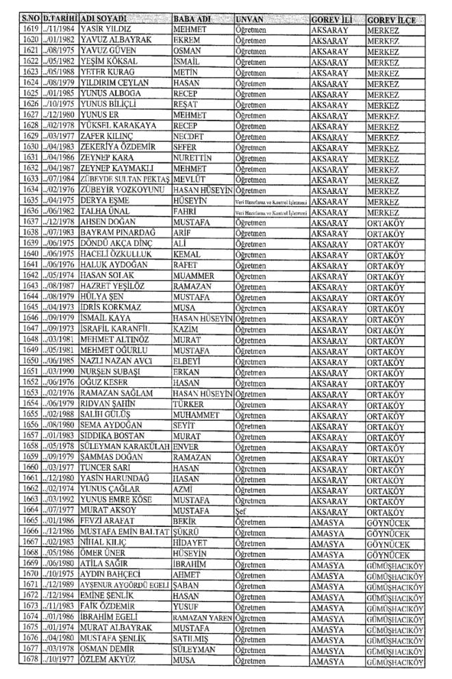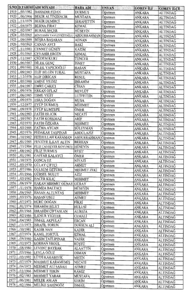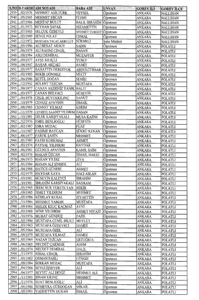 MEB'den İhraç Edilenlerin İsim İsim Tam Listesi