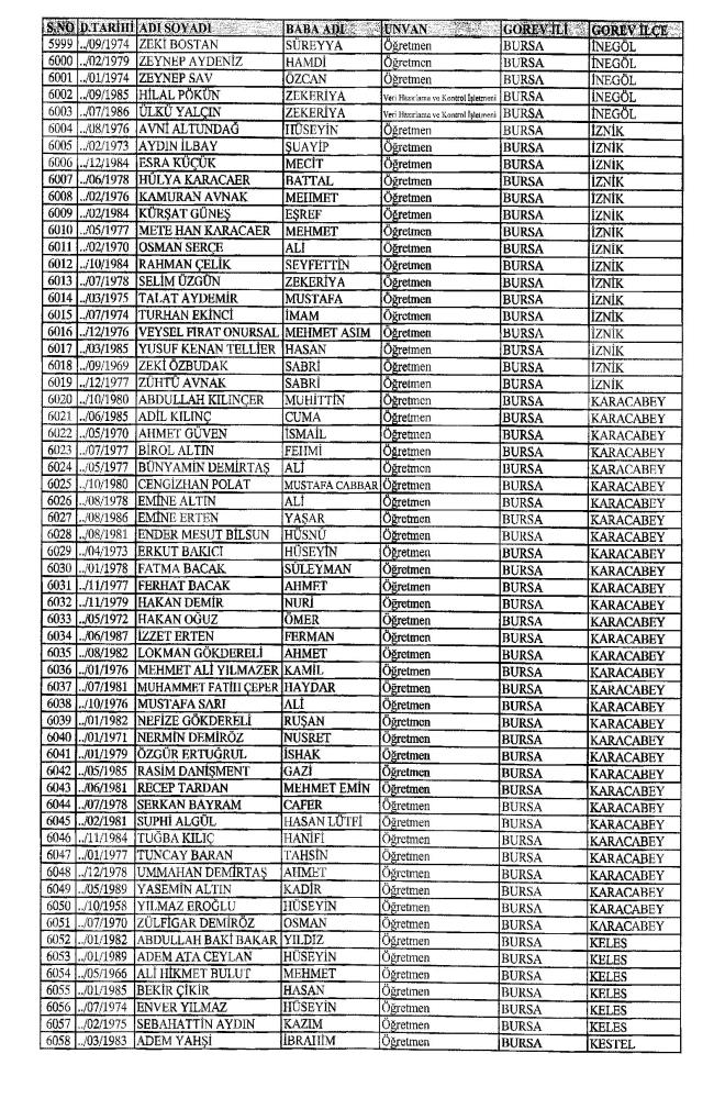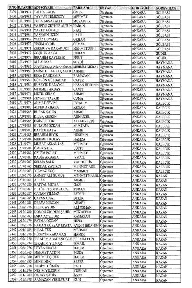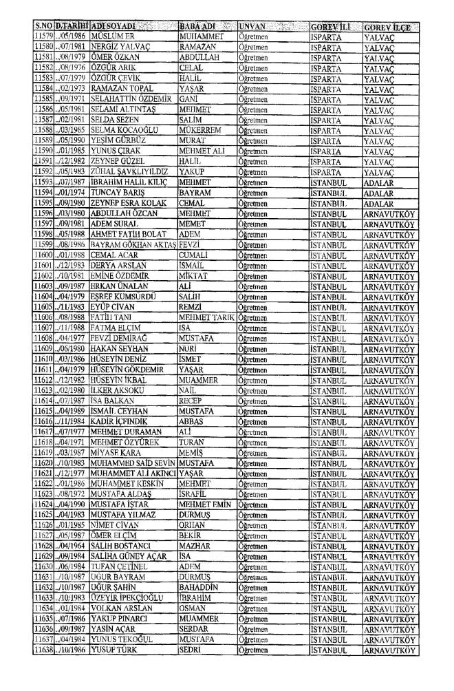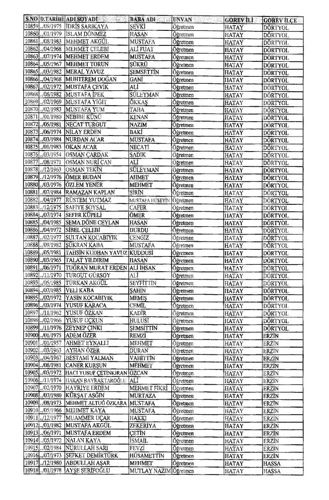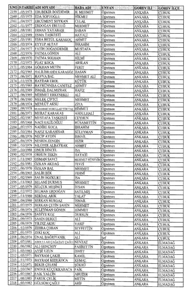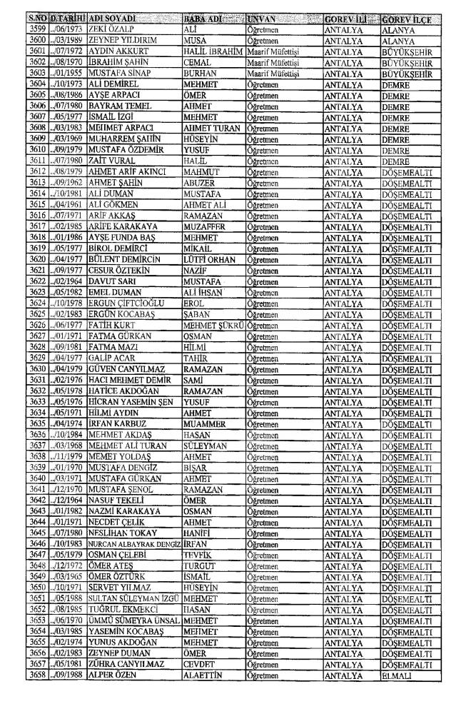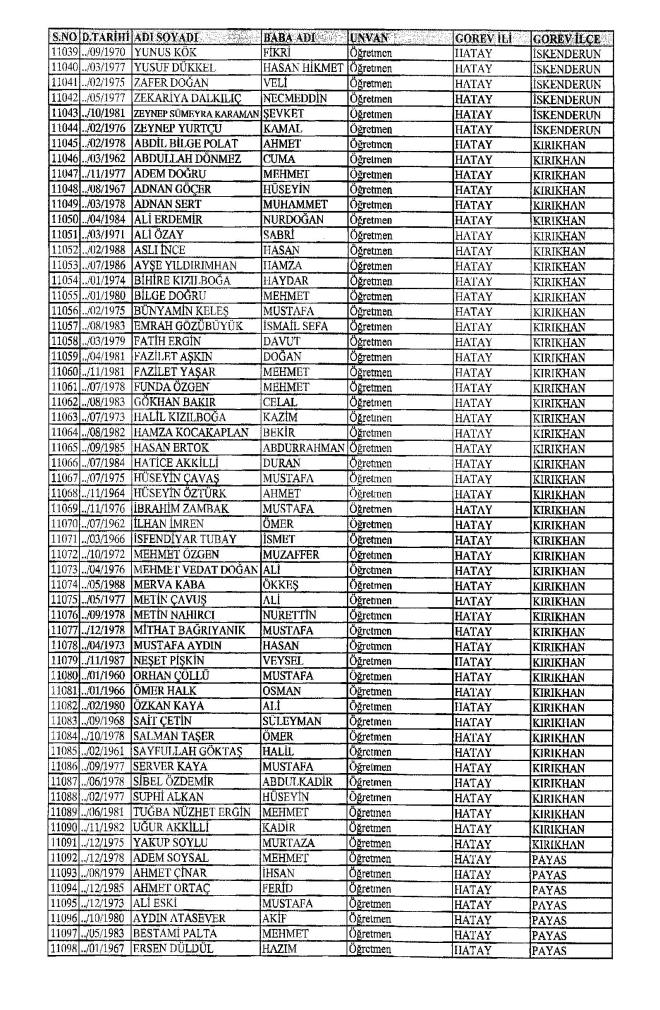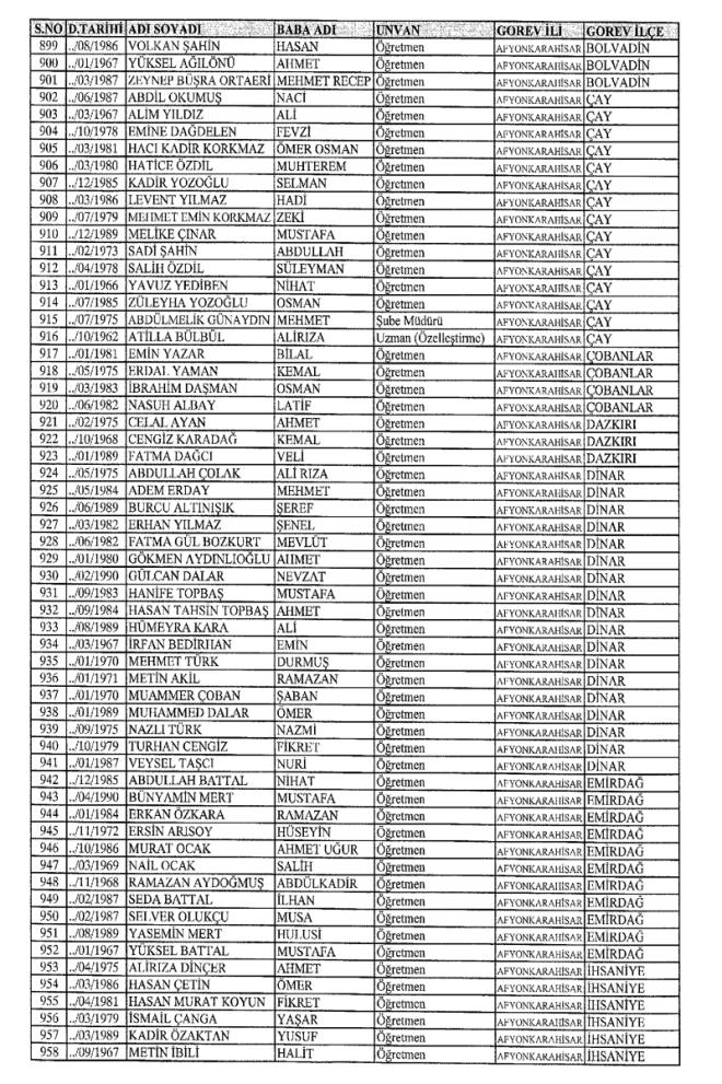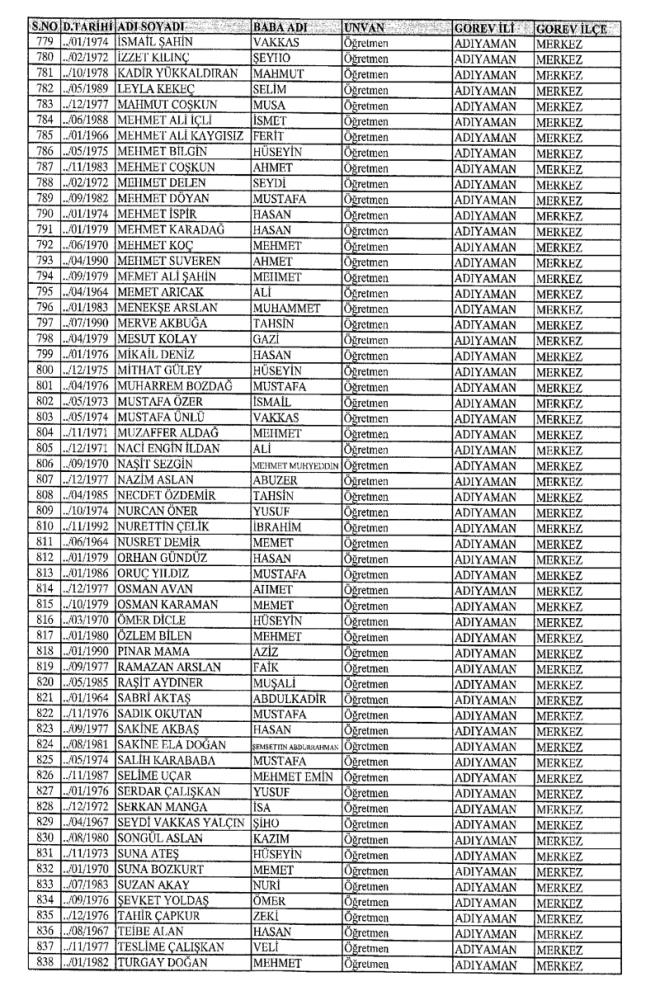 MEB'den İhraç Edilenlerin İsim İsim Tam Listesi