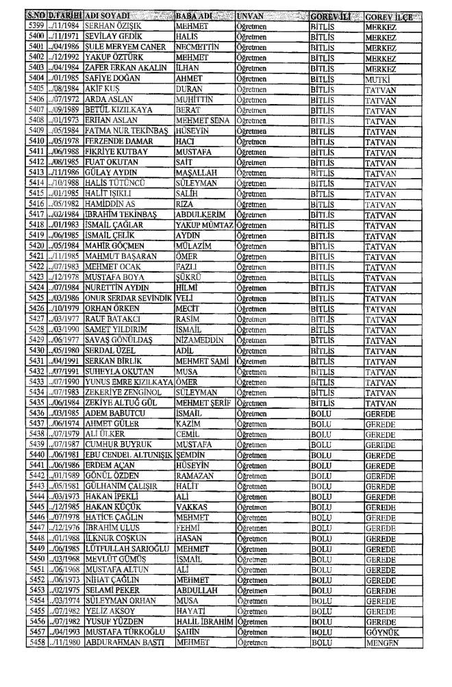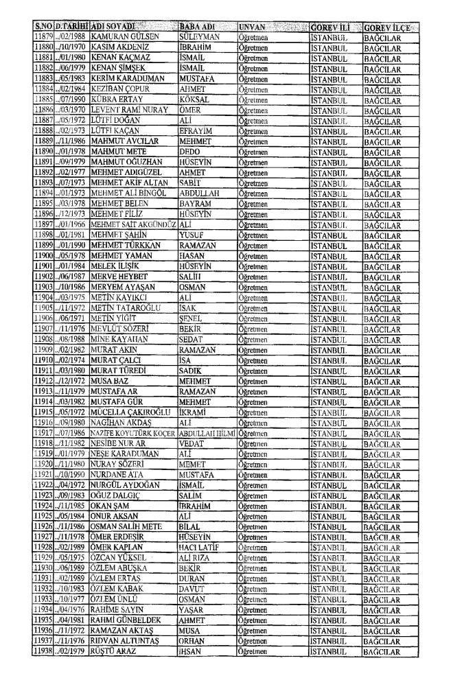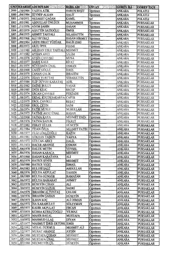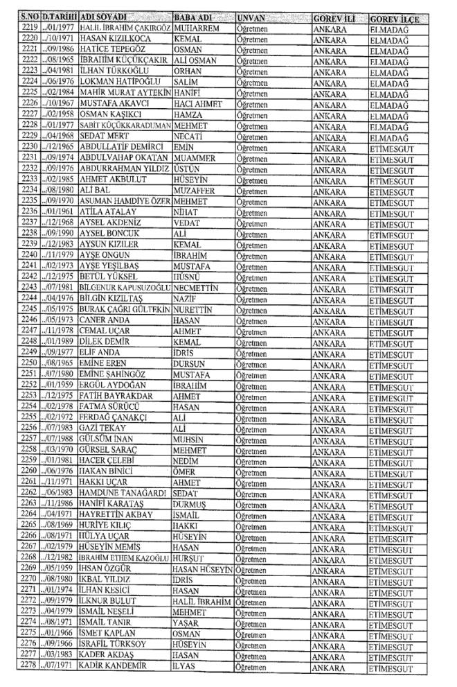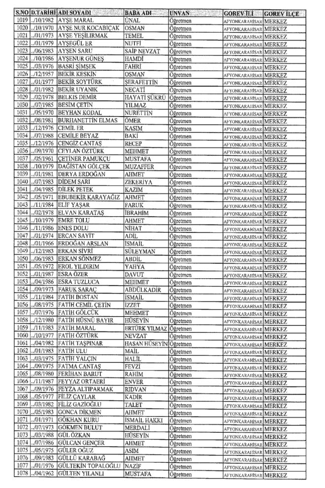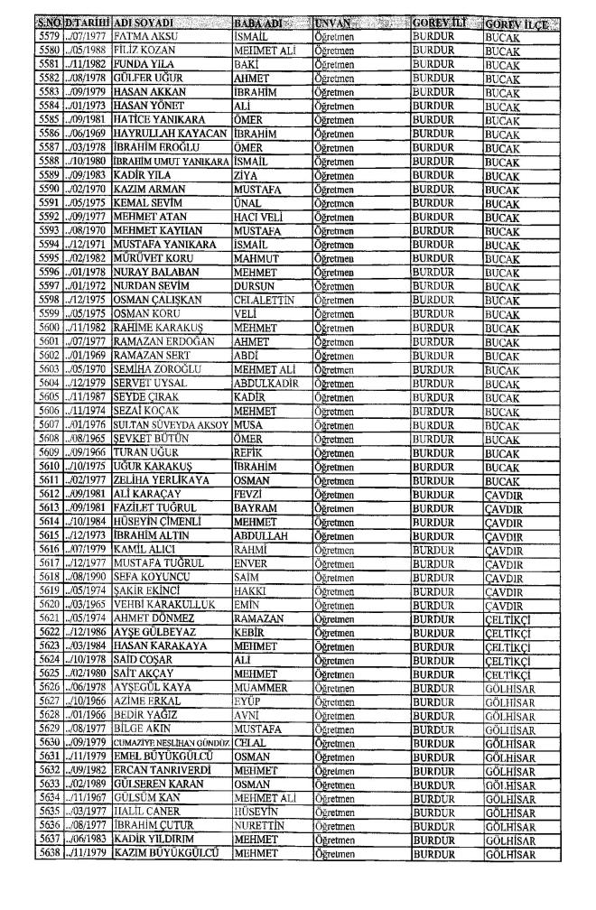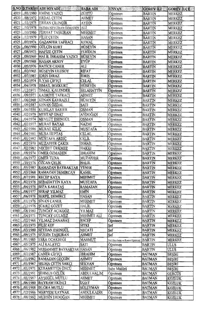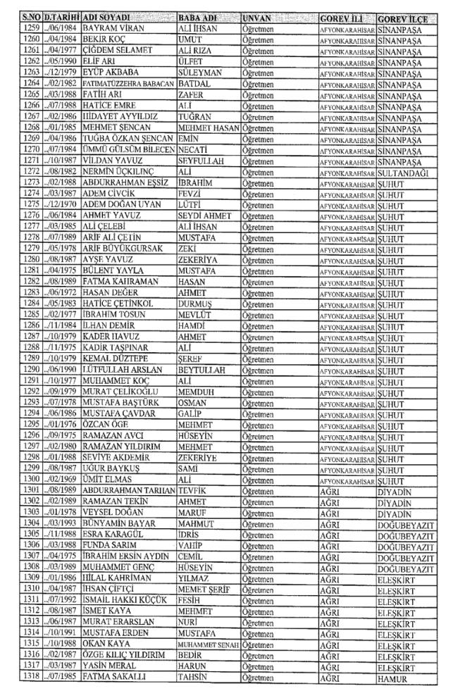 MEB'den İhraç Edilenlerin İsim İsim Tam Listesi