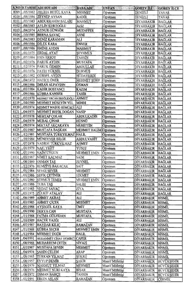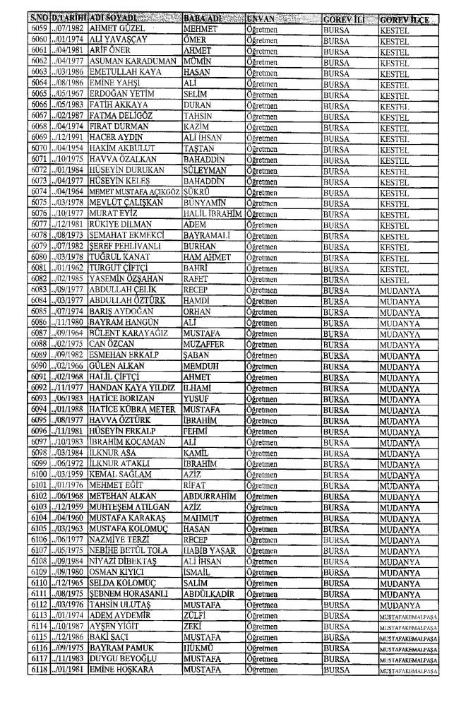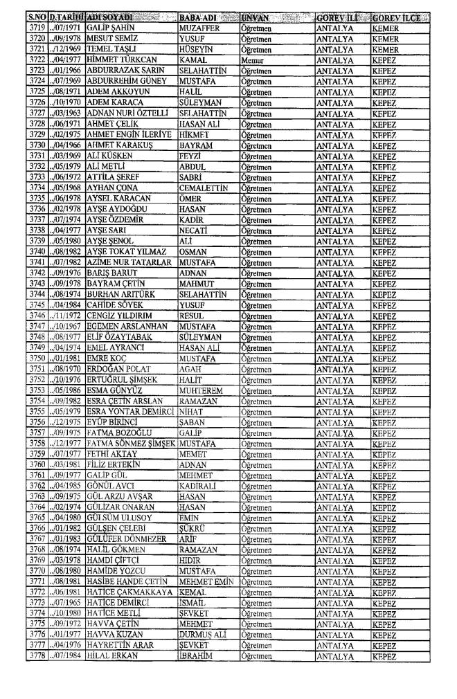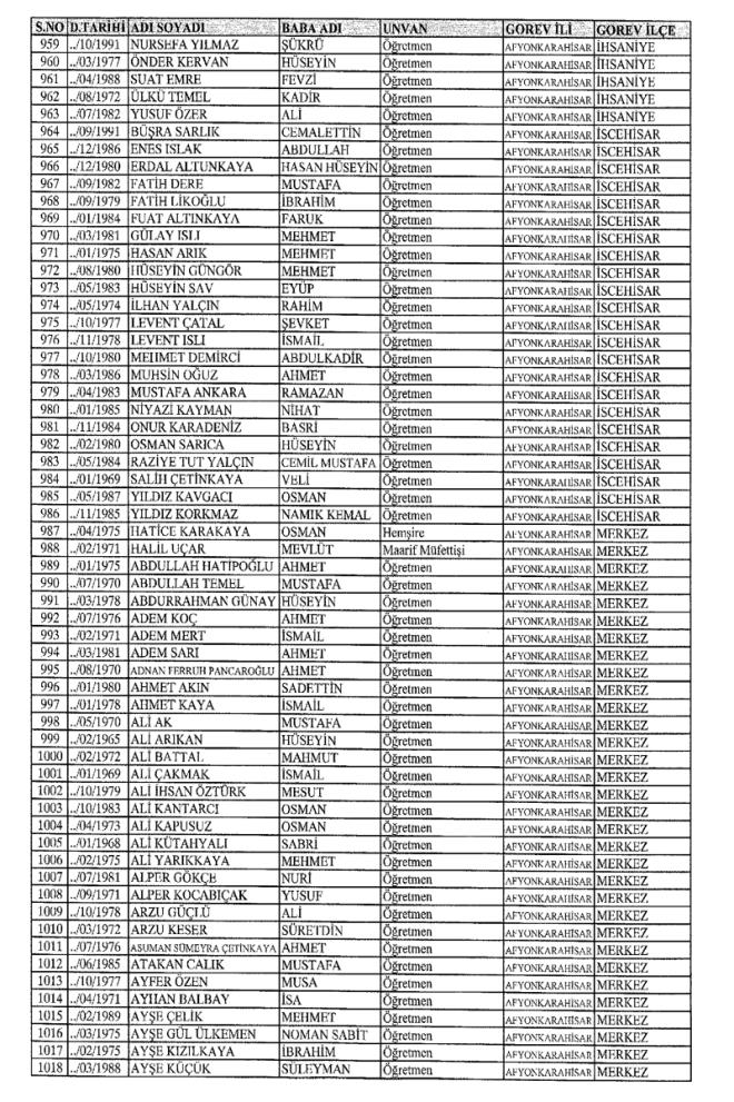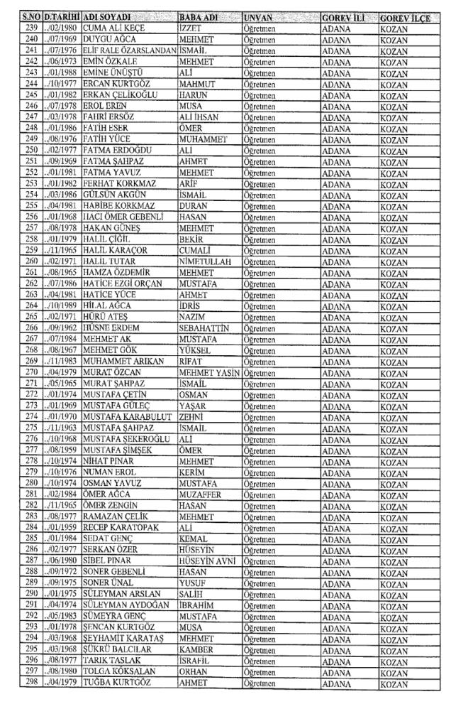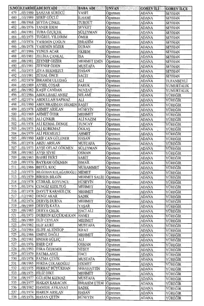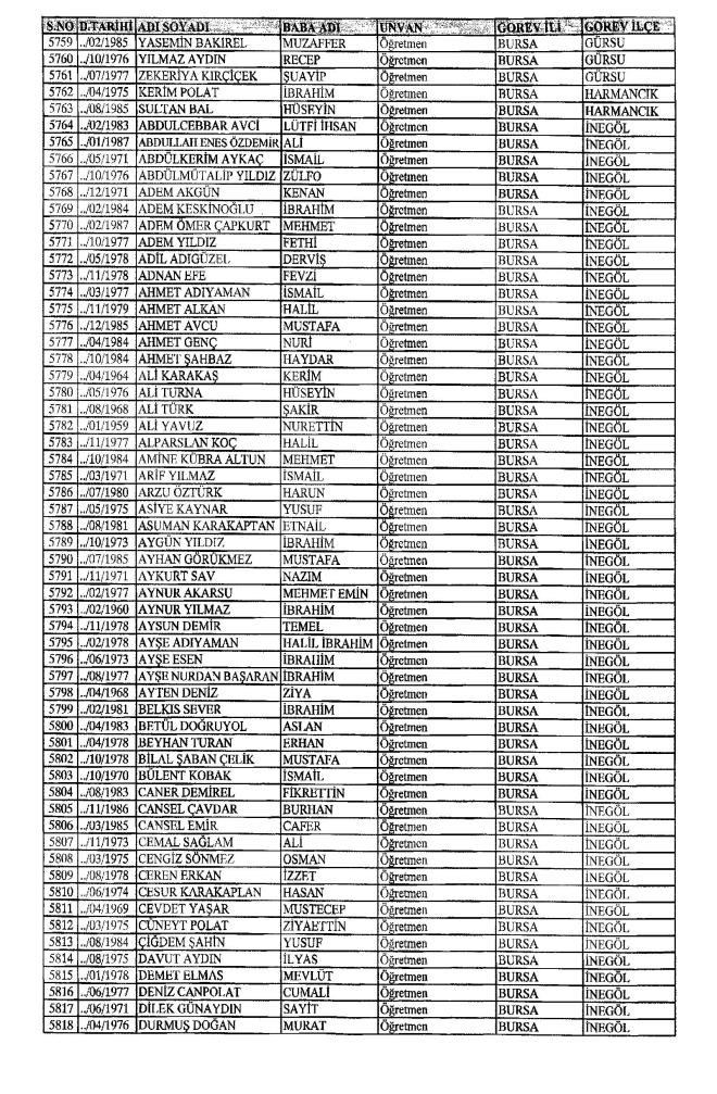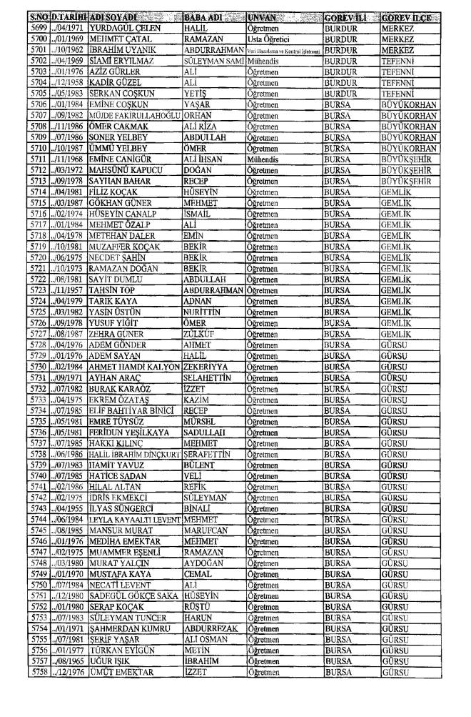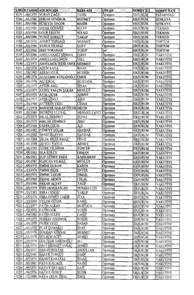 MEB'den İhraç Edilenlerin İsim İsim Tam Listesi