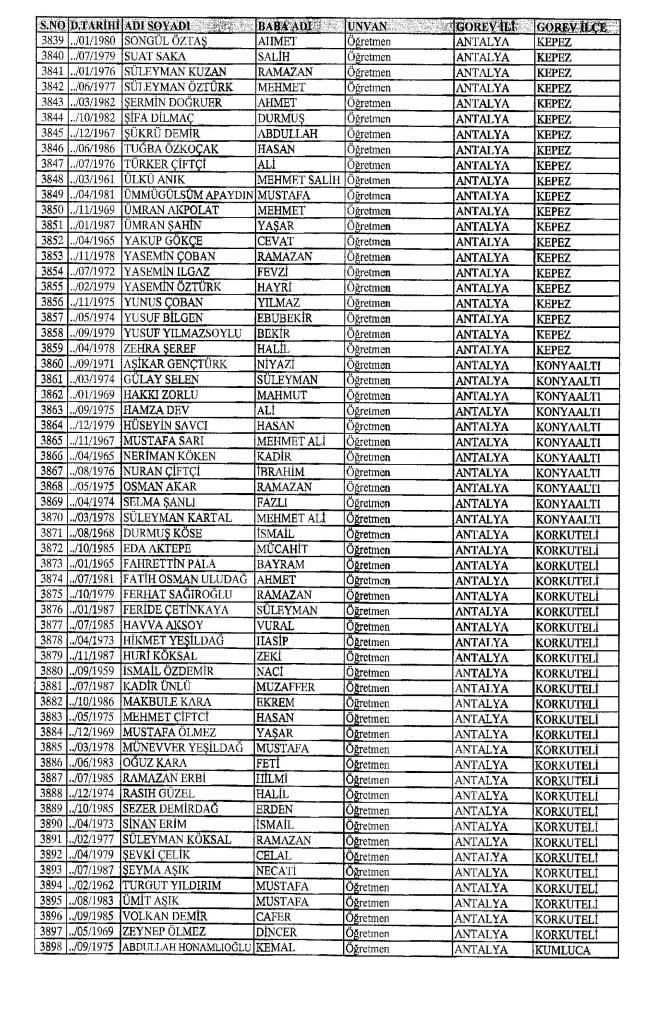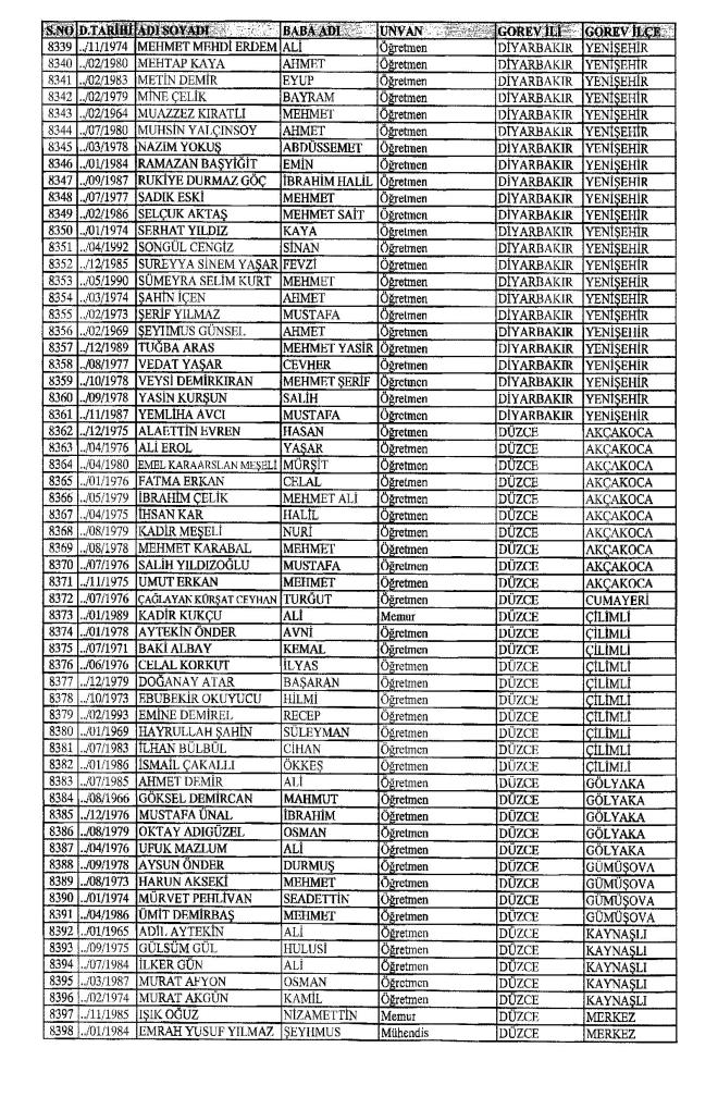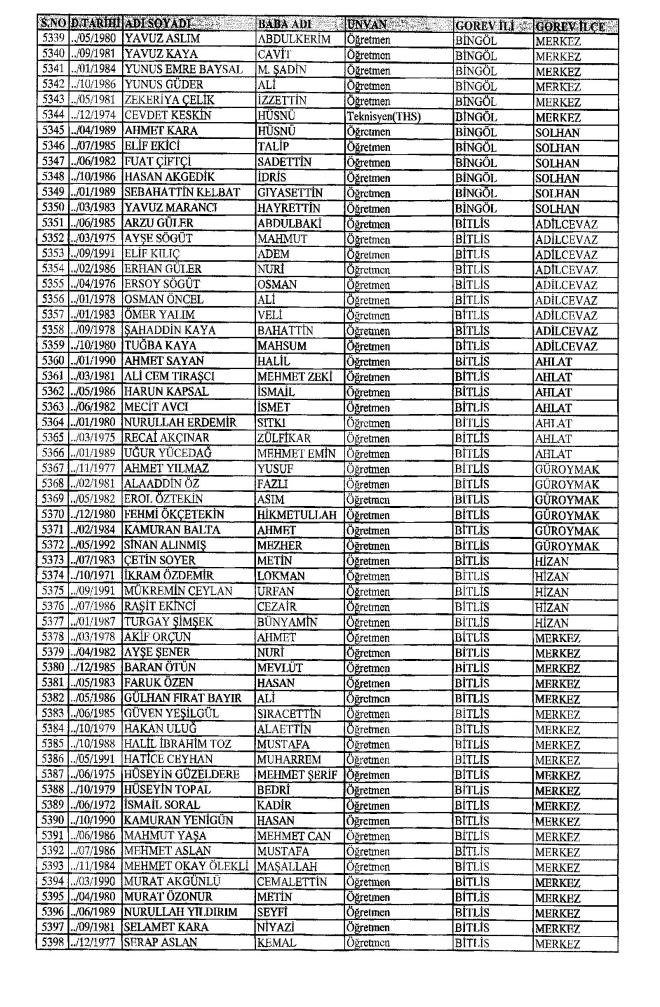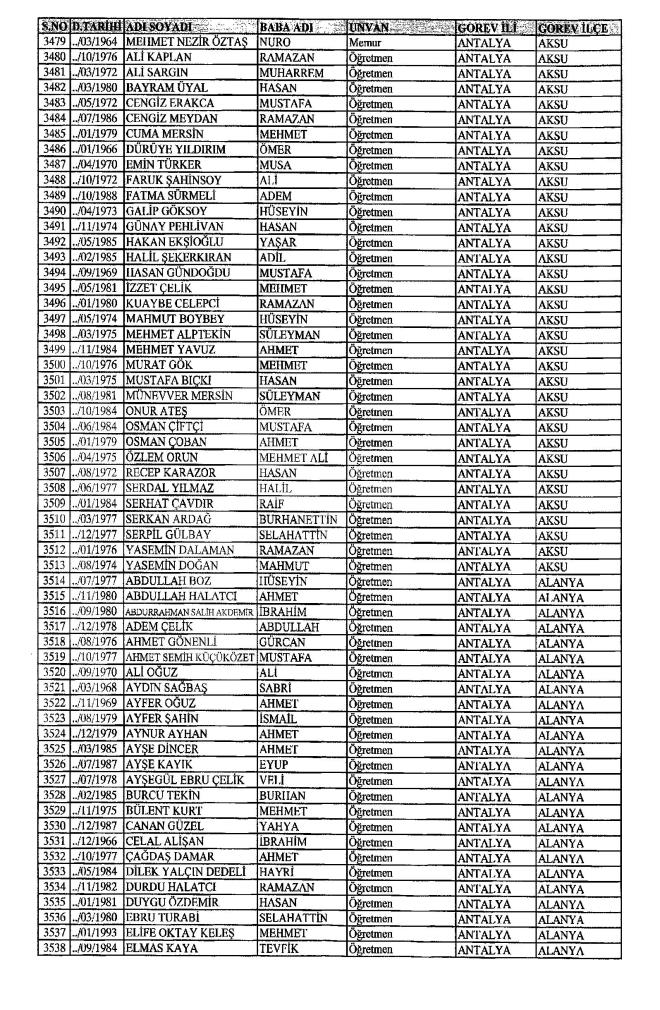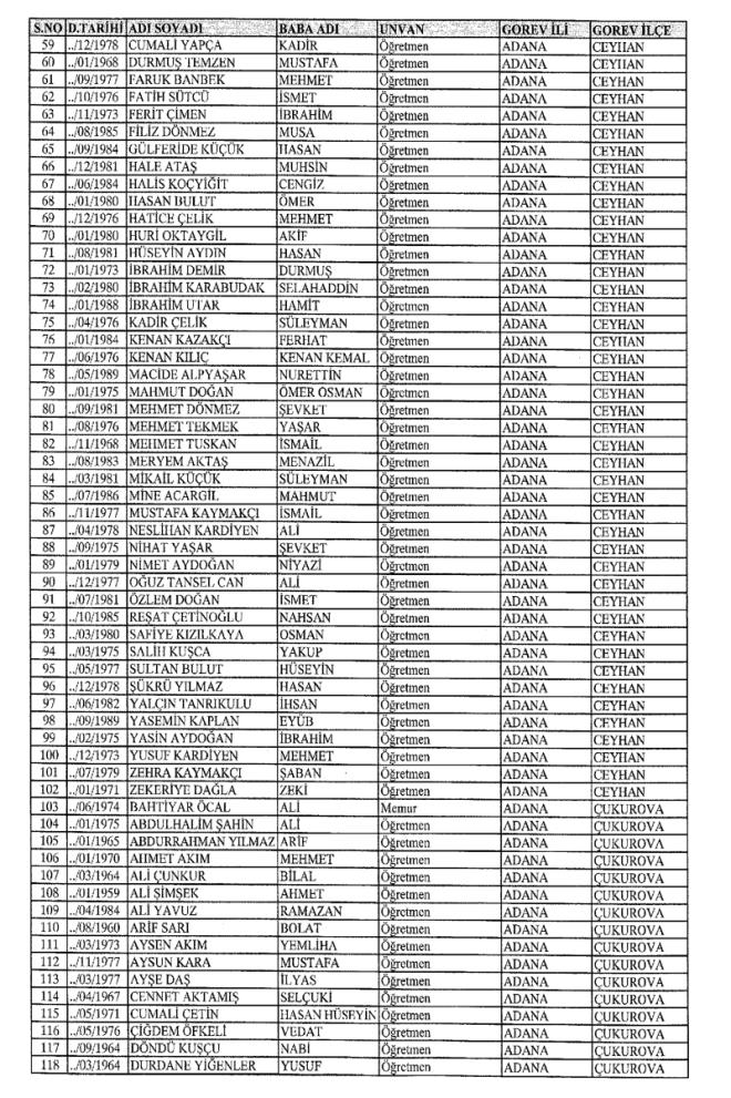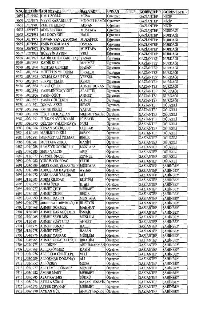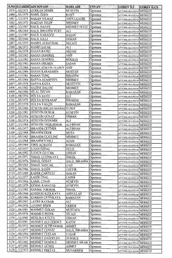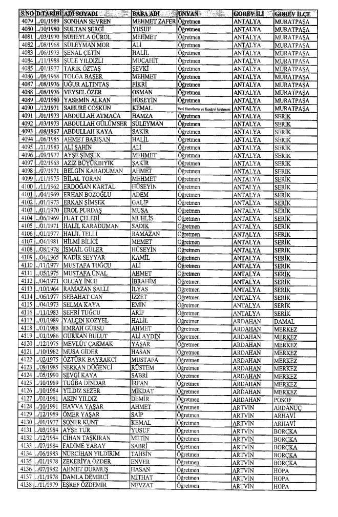 MEB'den İhraç Edilenlerin İsim İsim Tam Listesi