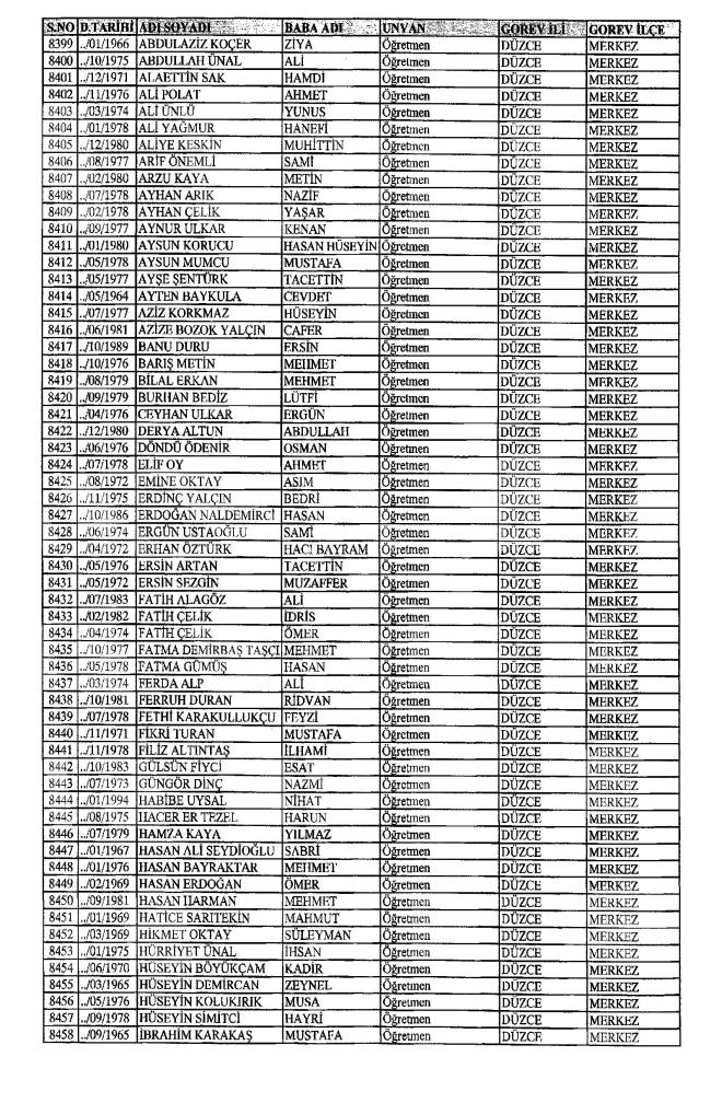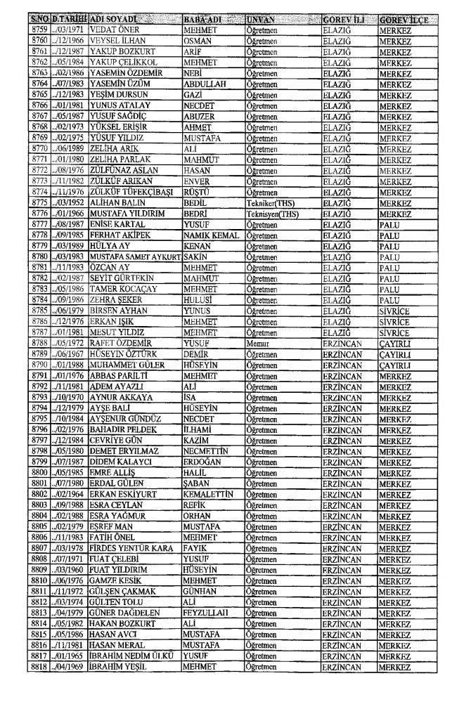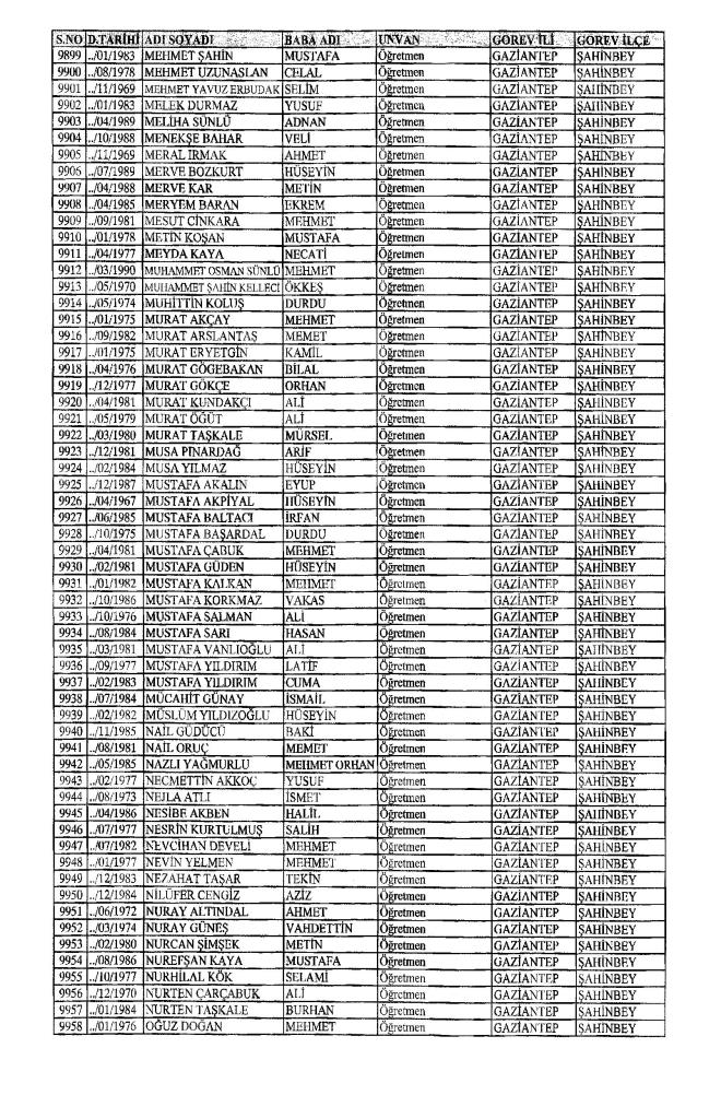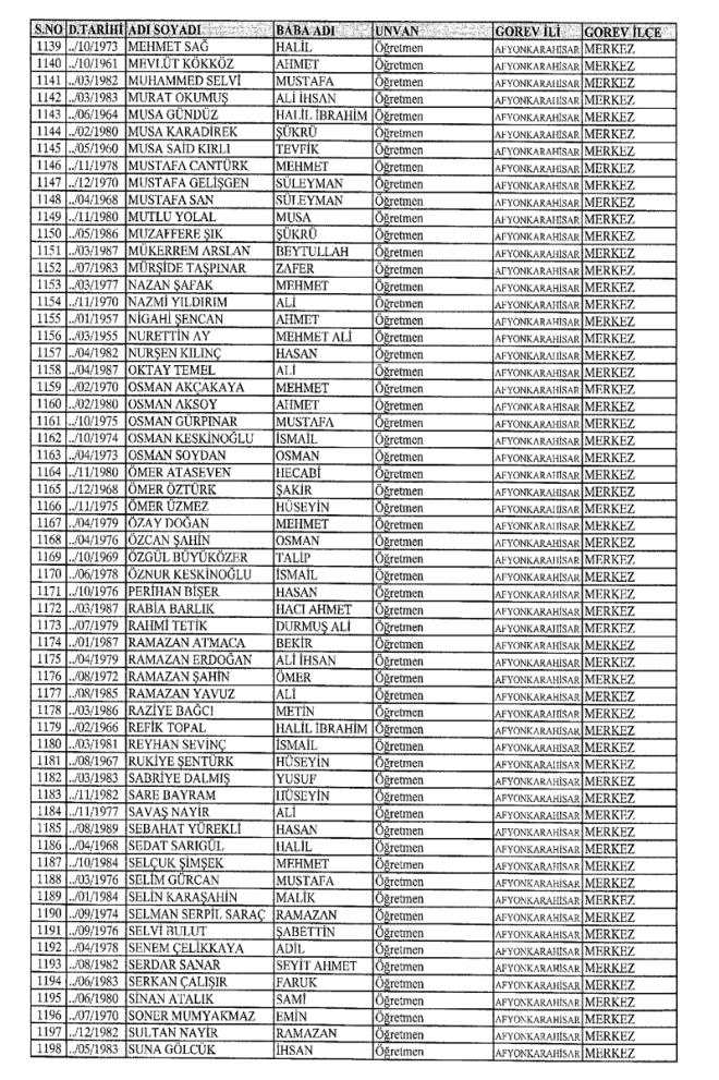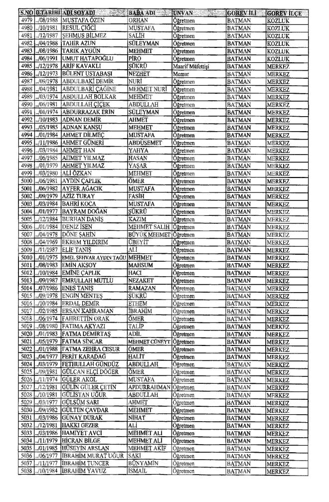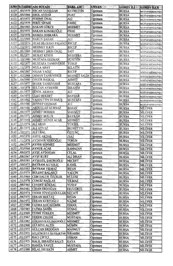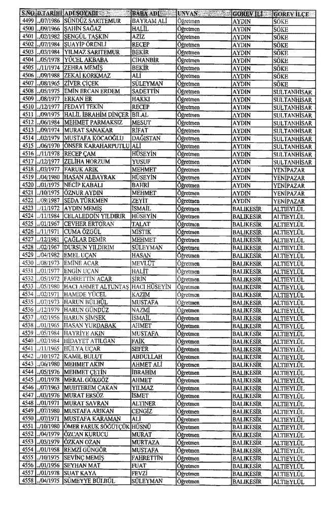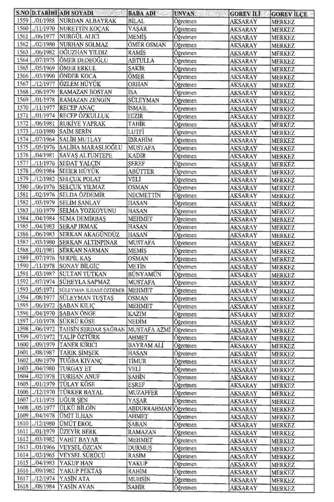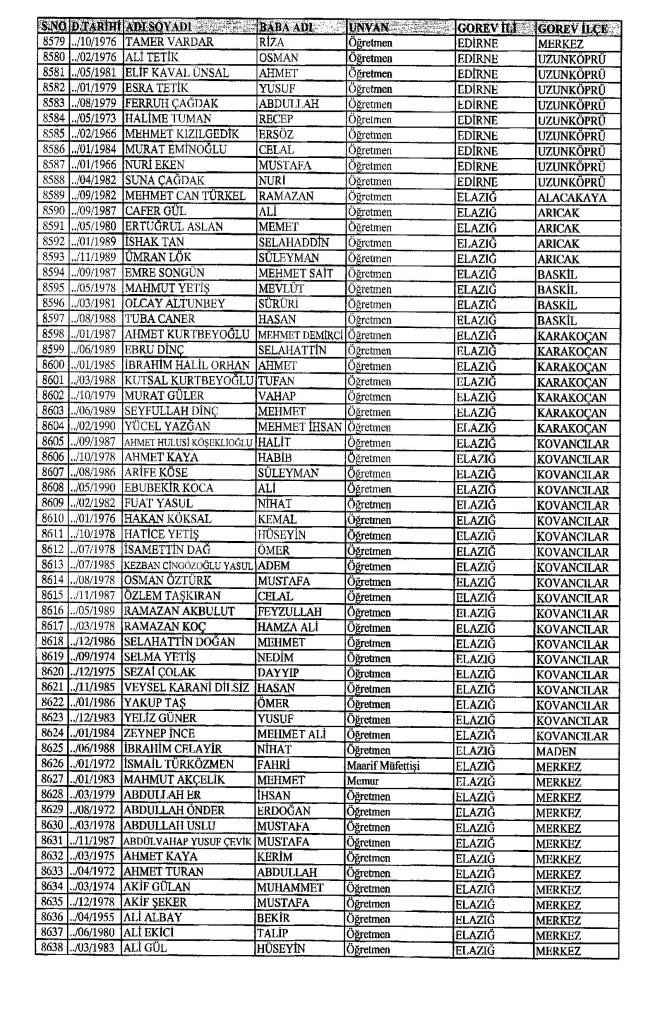 MEB'den İhraç Edilenlerin İsim İsim Tam Listesi
