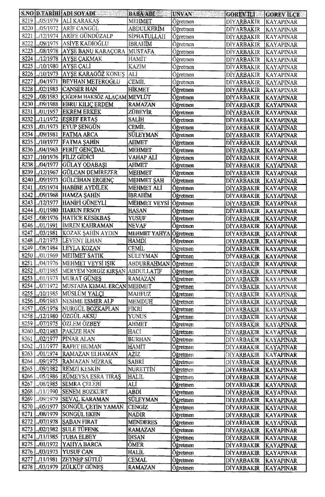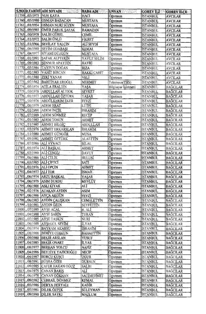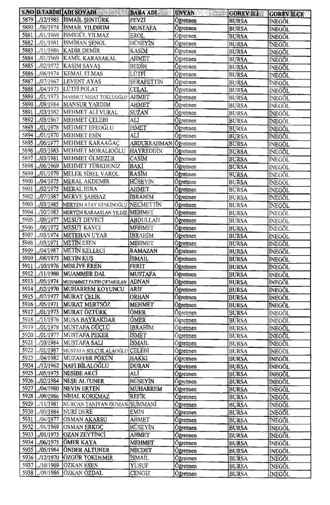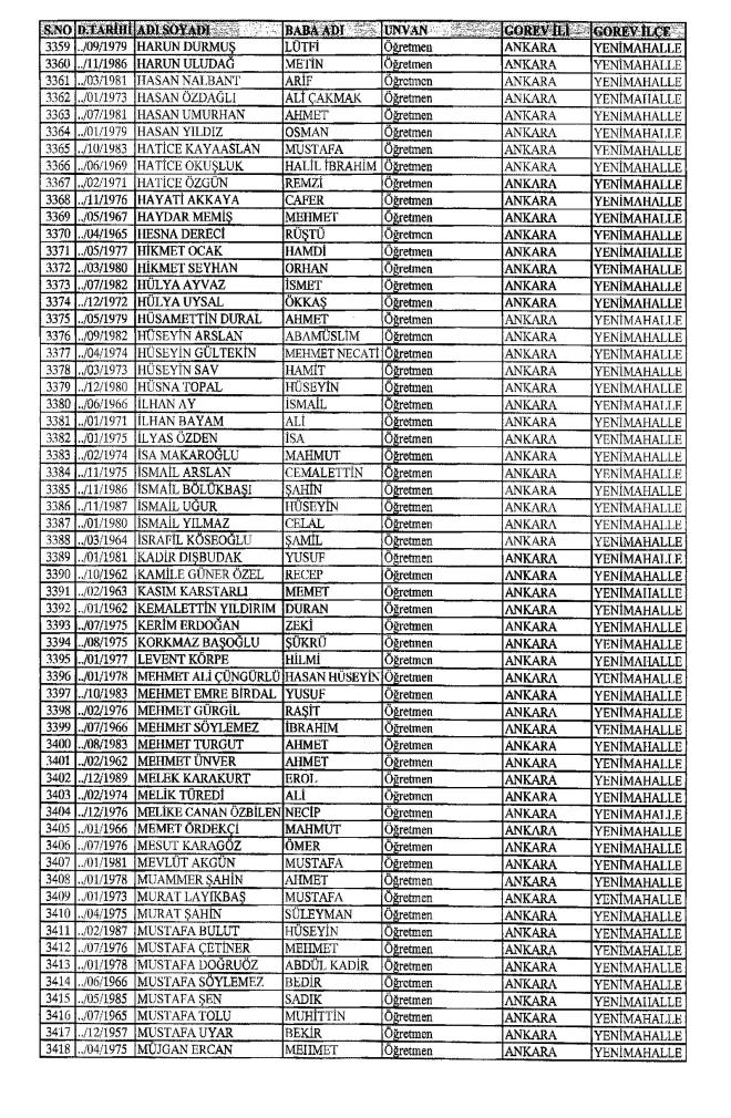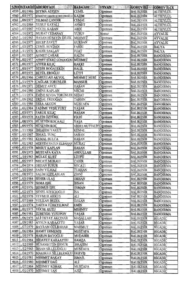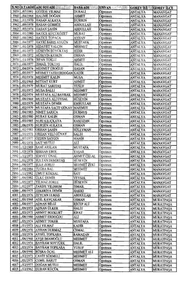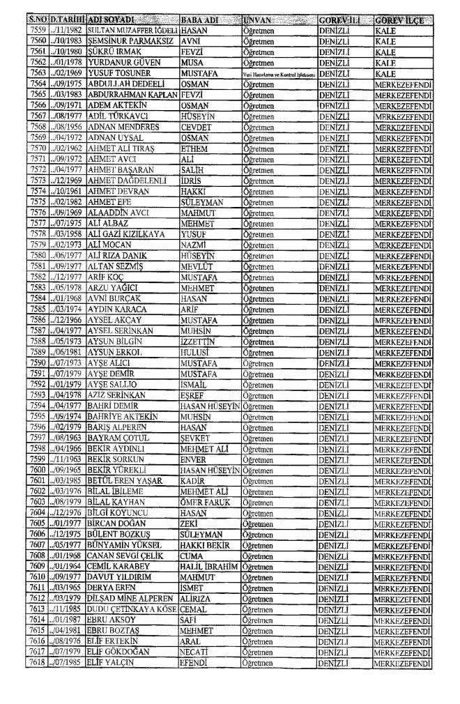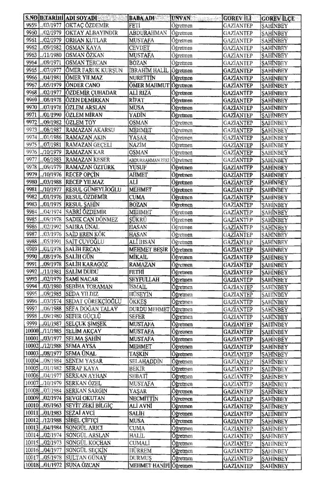 MEB'den İhraç Edilenlerin İsim İsim Tam Listesi