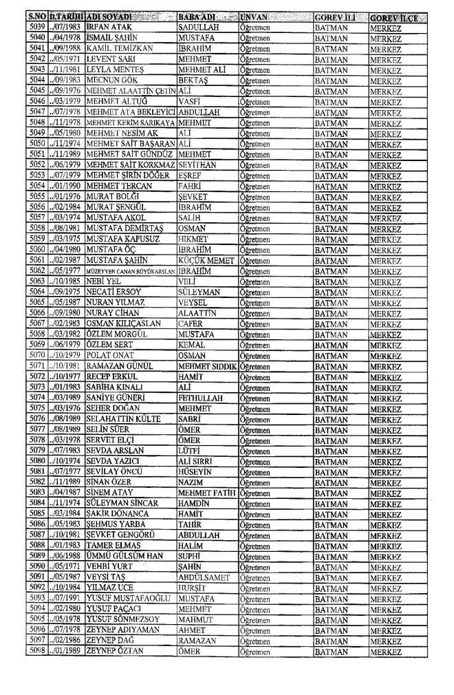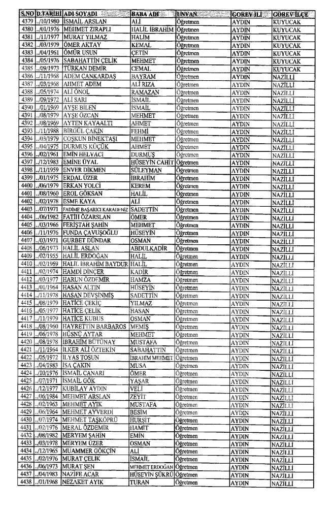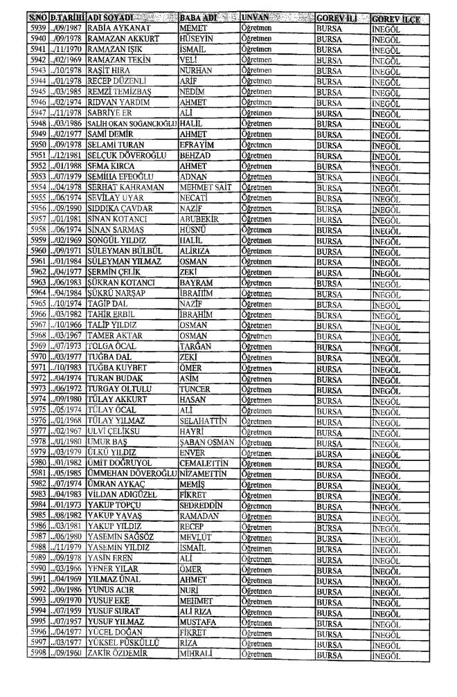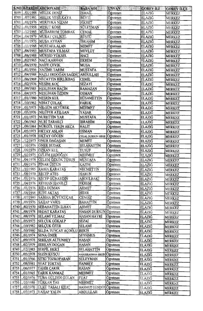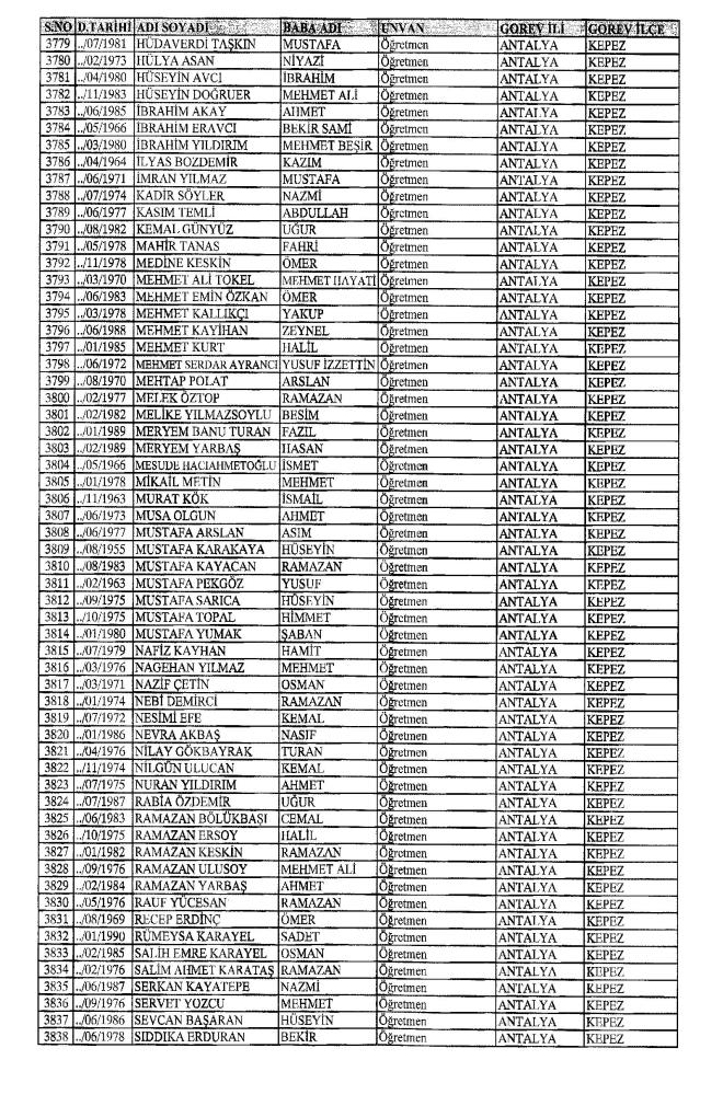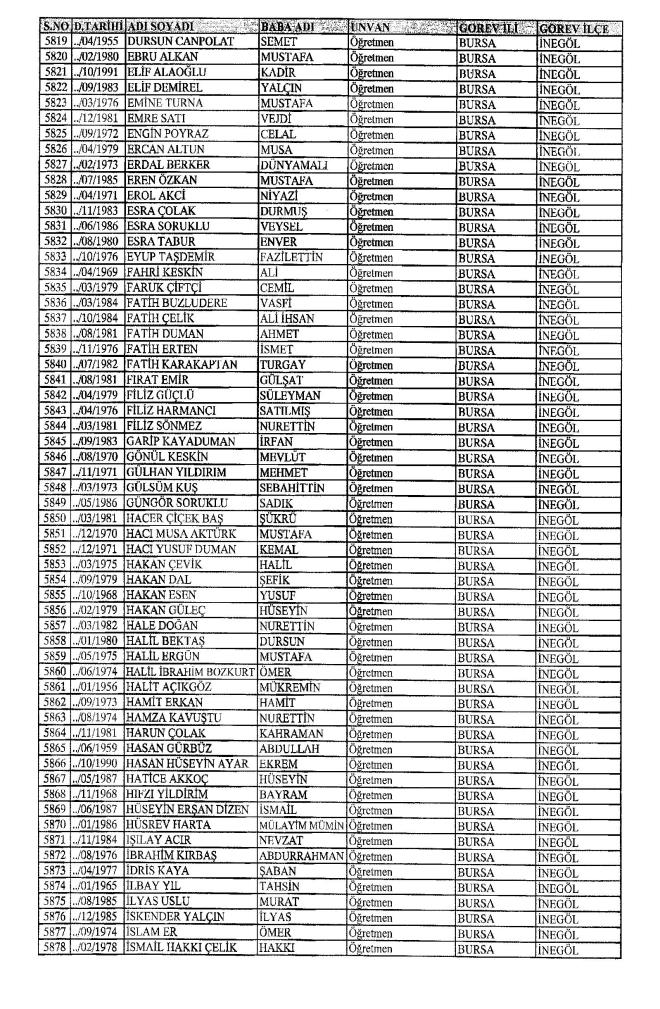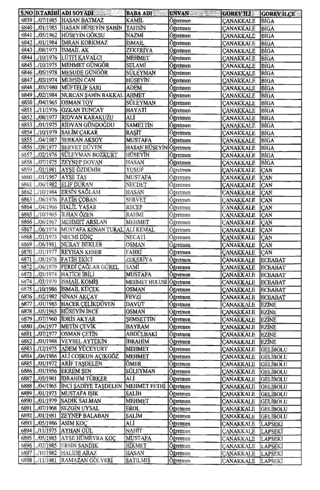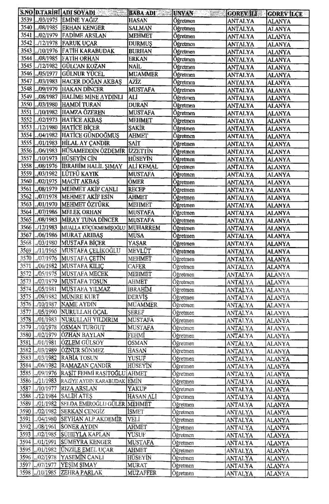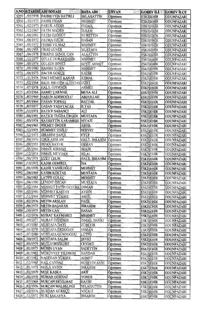 MEB'den İhraç Edilenlerin İsim İsim Tam Listesi