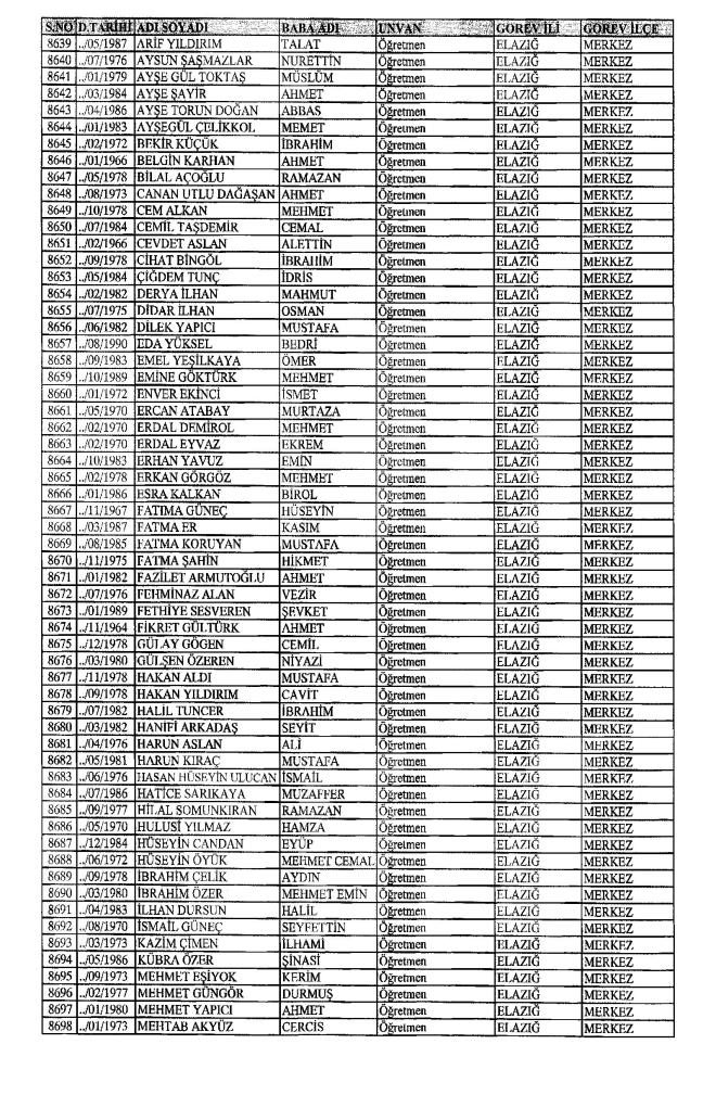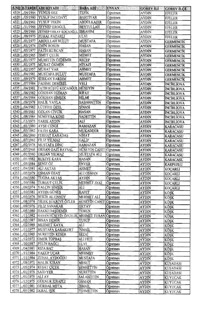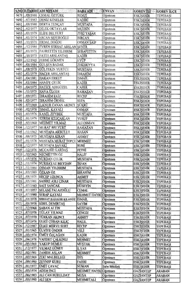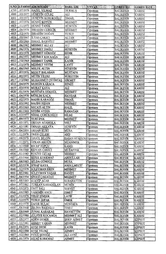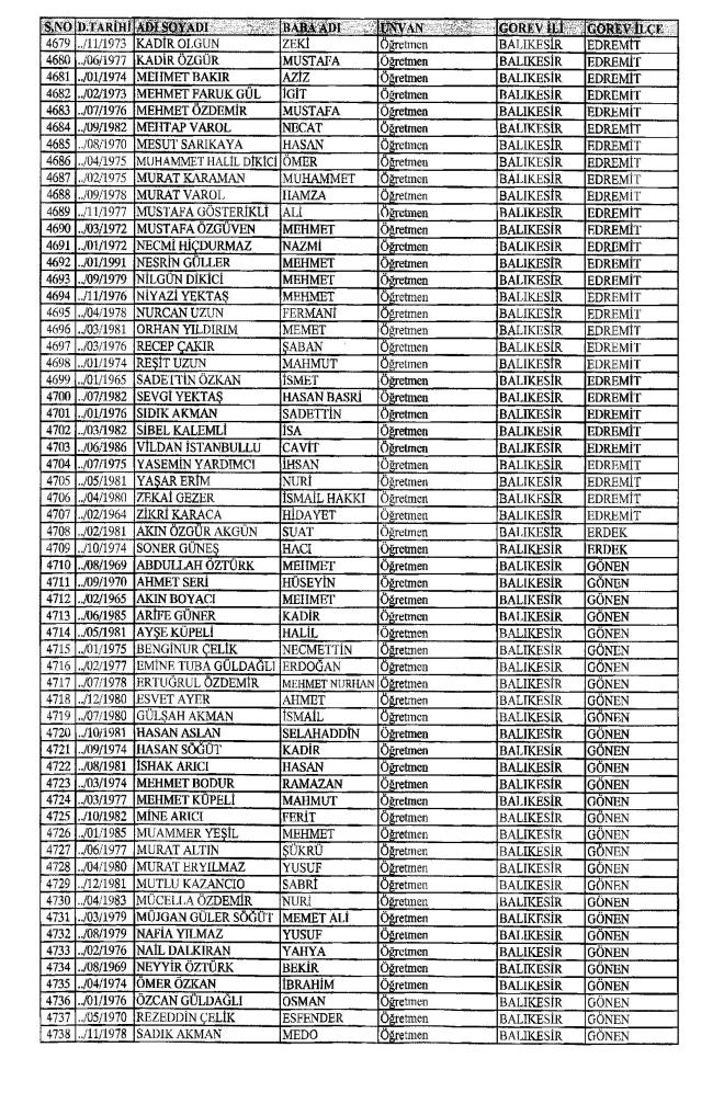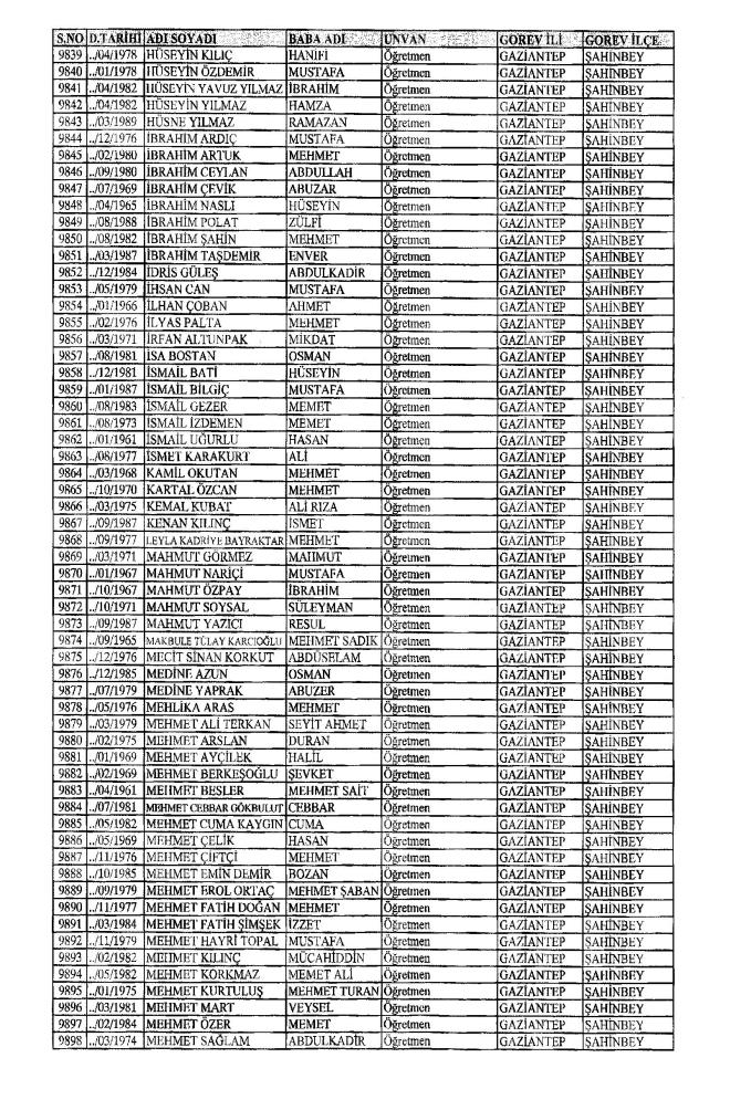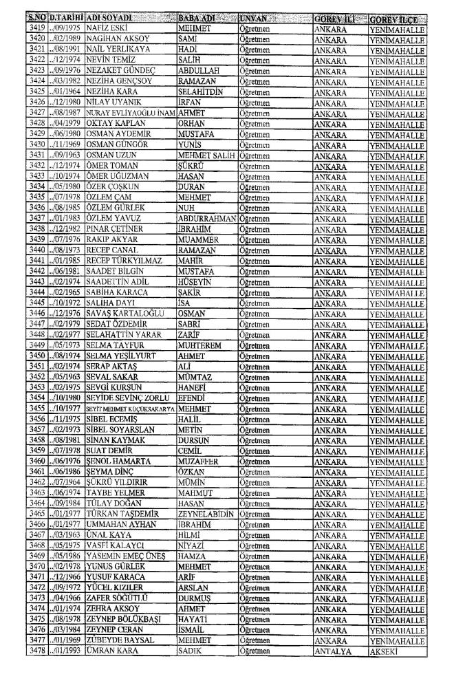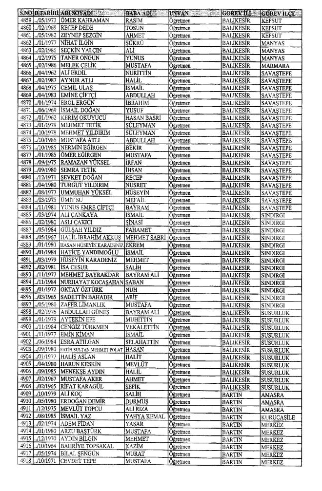 MEB'den İhraç Edilenlerin İsim İsim Tam Listesi