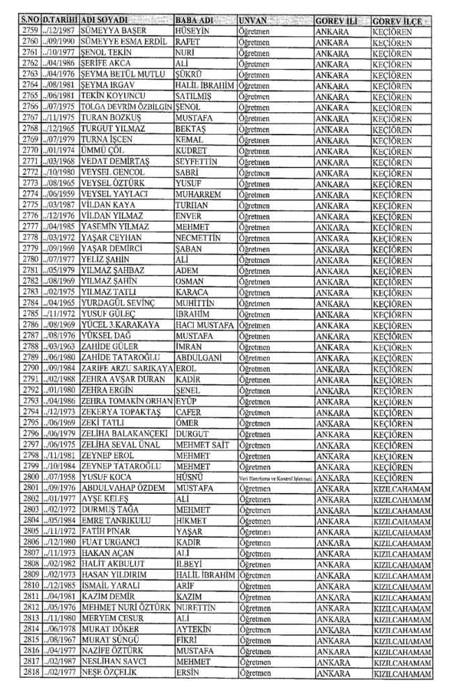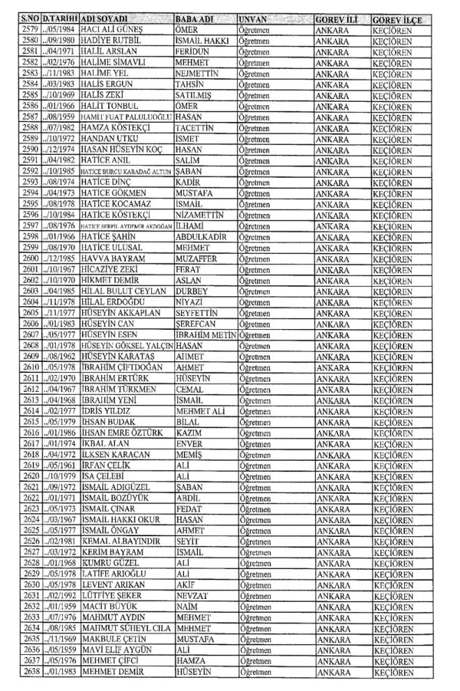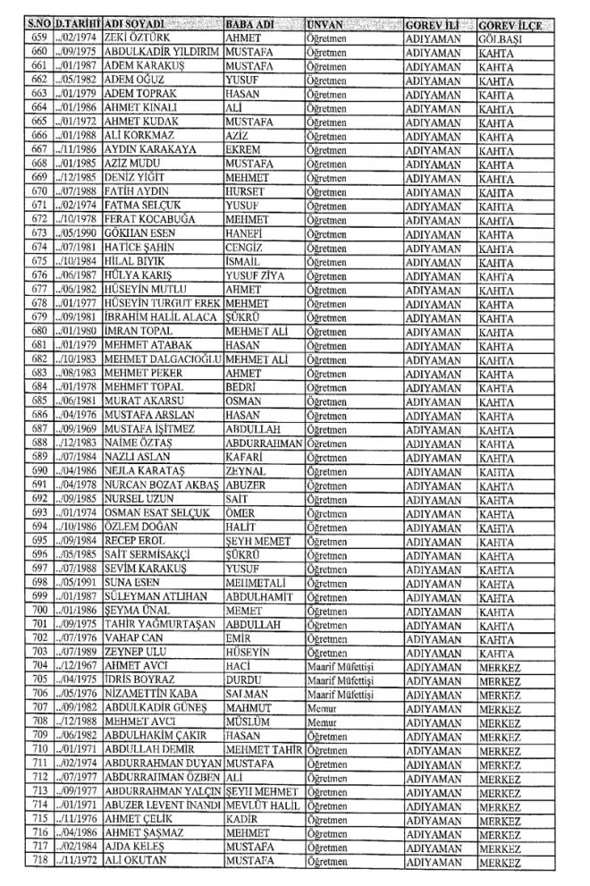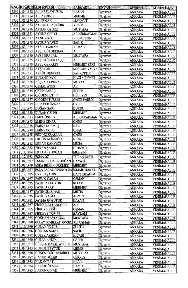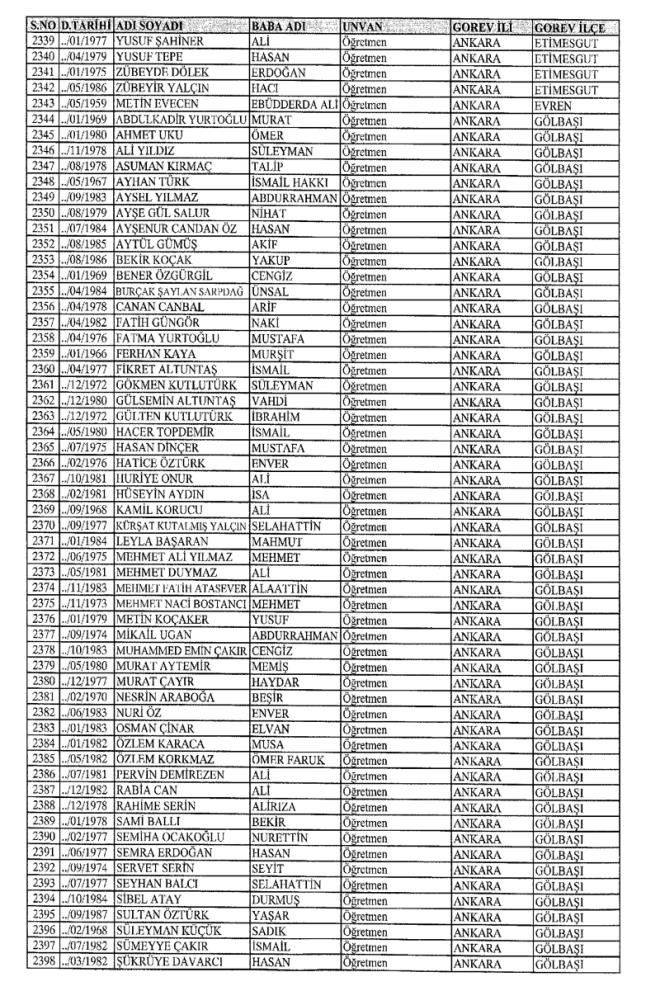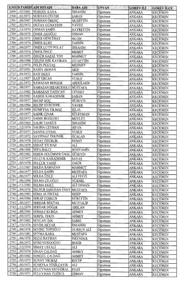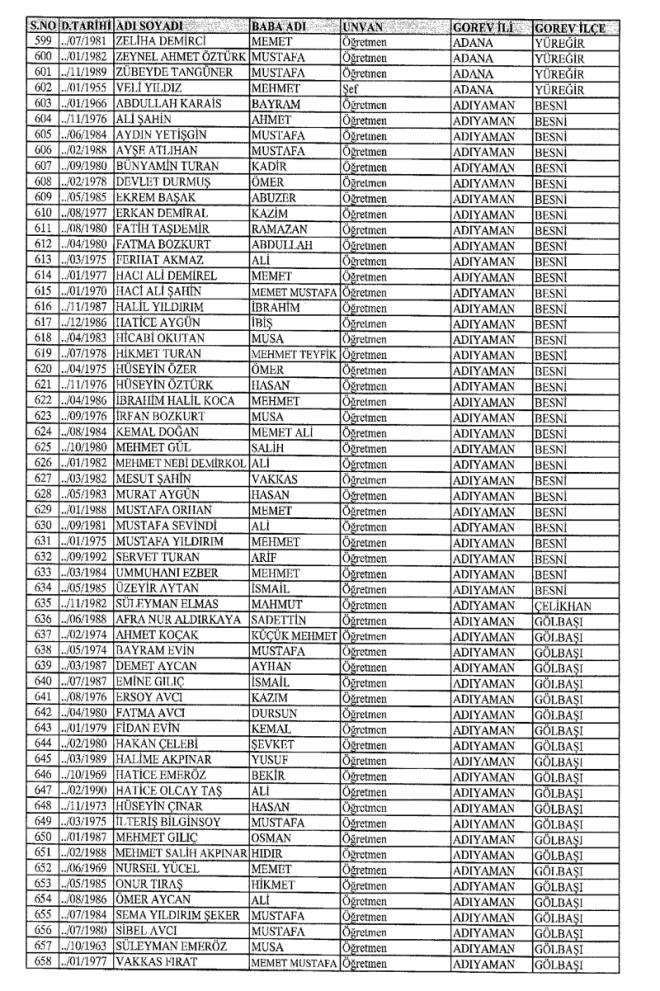 672 Sayılı Kanun Hükmünde Kararname Milli Eğitim Bakanlığı'ndan ihraç edilen Öğretmen, bürokrat ve memurların isim isim listesini yayımlıyoruz.