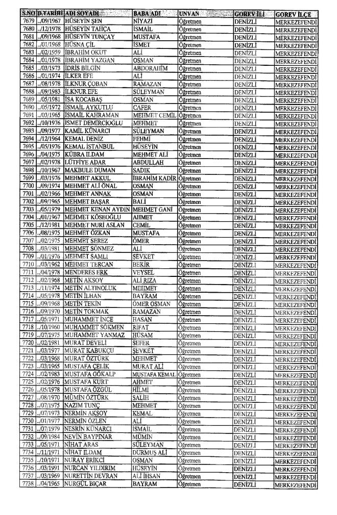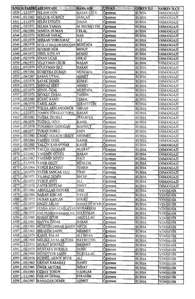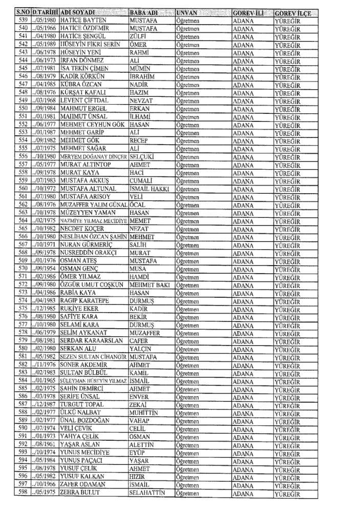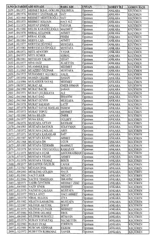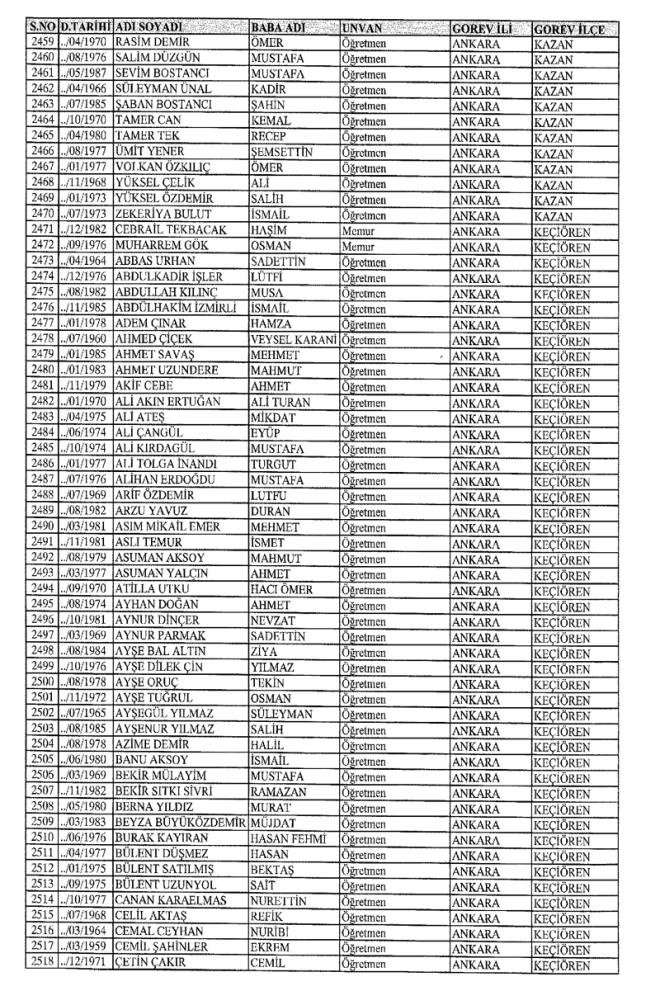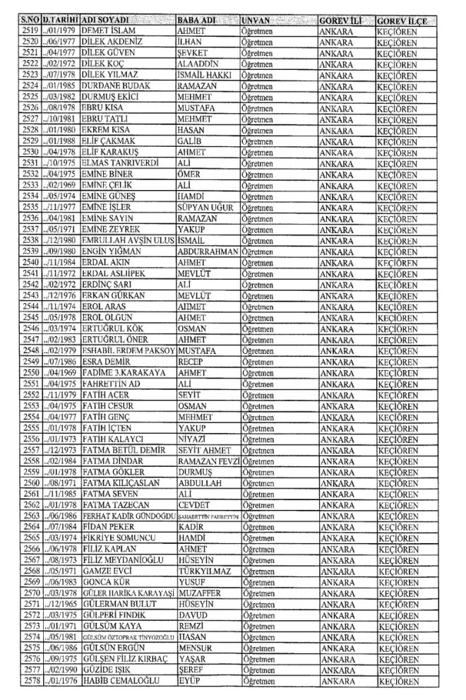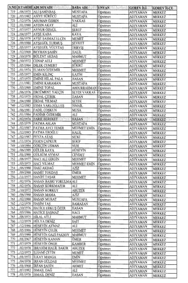 672 Sayılı Kanun Hükmünde Kararname Milli Eğitim Bakanlığı'ndan ihraç edilen Öğretmen, bürokrat ve memurların isim isim listesini yayımlıyoruz.
