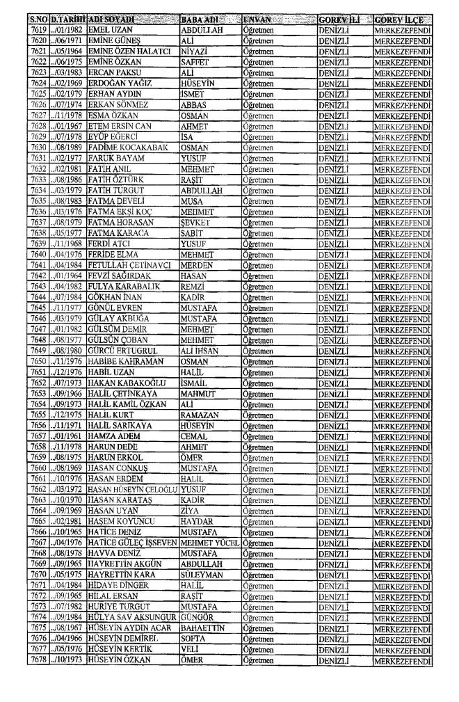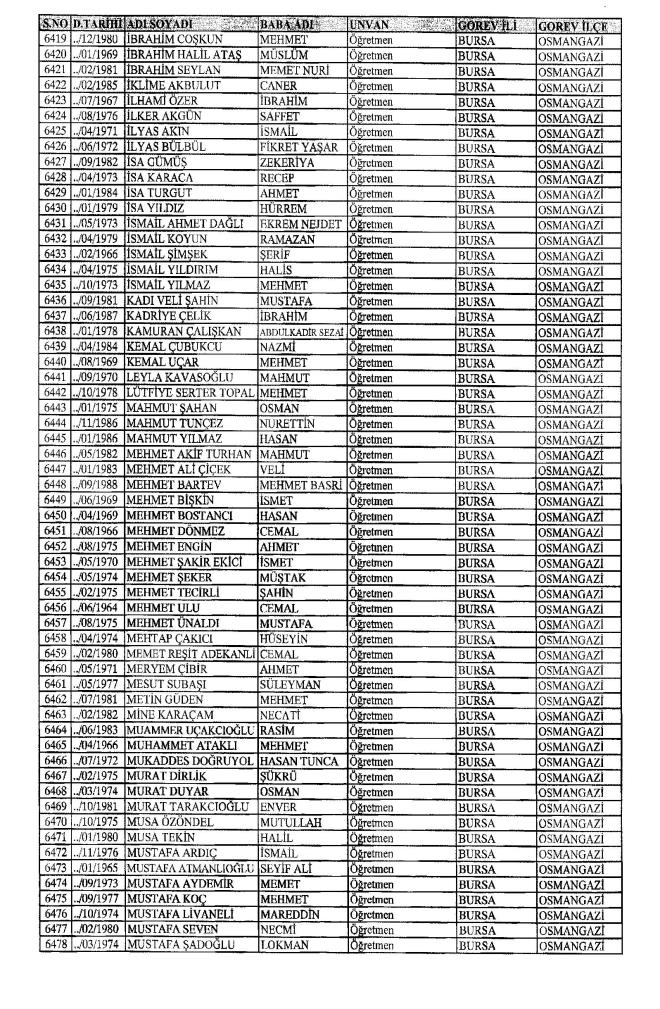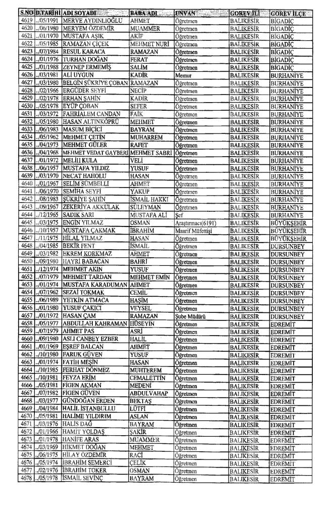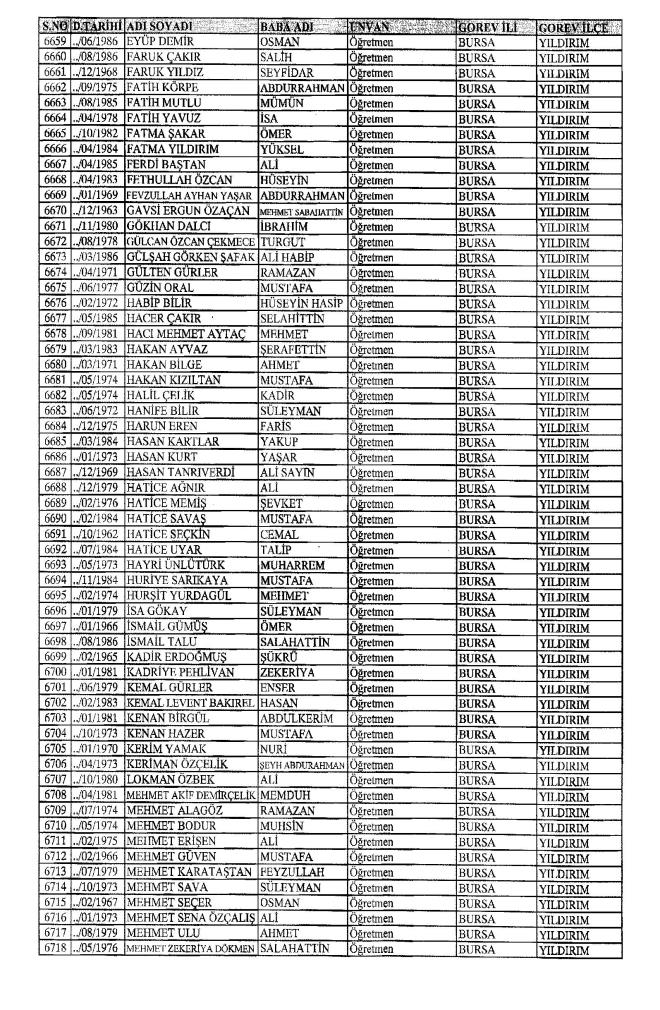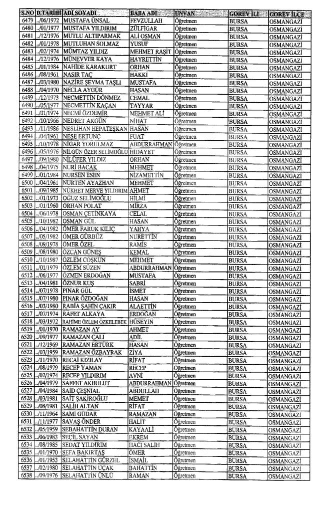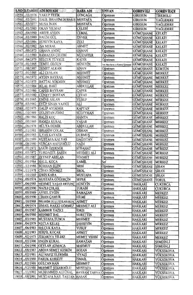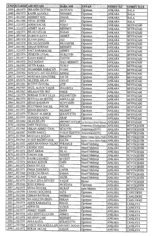 672 Sayılı Kanun Hükmünde Kararname Milli Eğitim Bakanlığı'ndan ihraç edilen Öğretmen, bürokrat ve memurların isim isim listesini yayımlıyoruz.