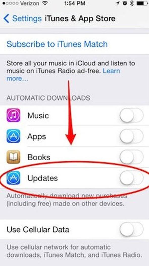 Sürekli arkaplanda uygulama güncelleştirmeye çalışan bu özellik de iPhone'ları yavaşlattığından Ayarlar>iTunes & Uygulama Mağazası> Otomatik Güncellemeler bölümündeki butonu pasifize edin.