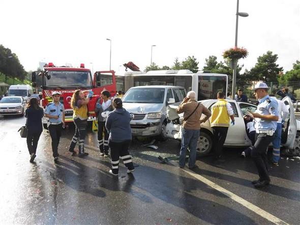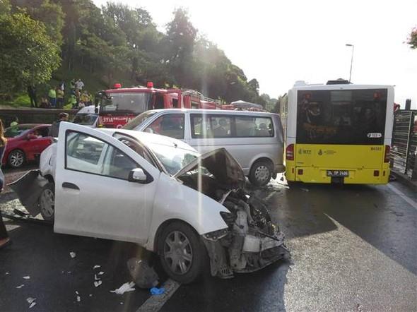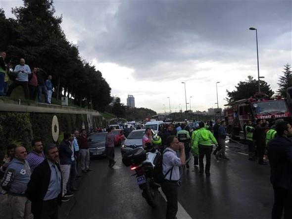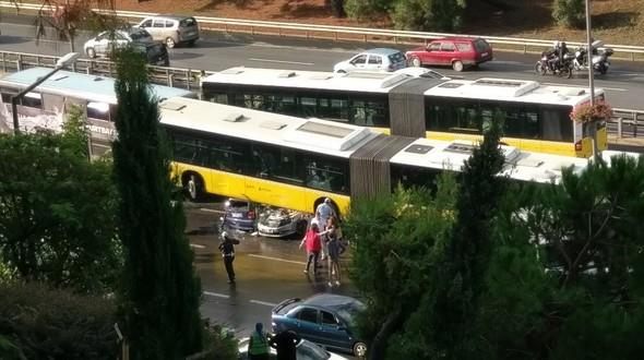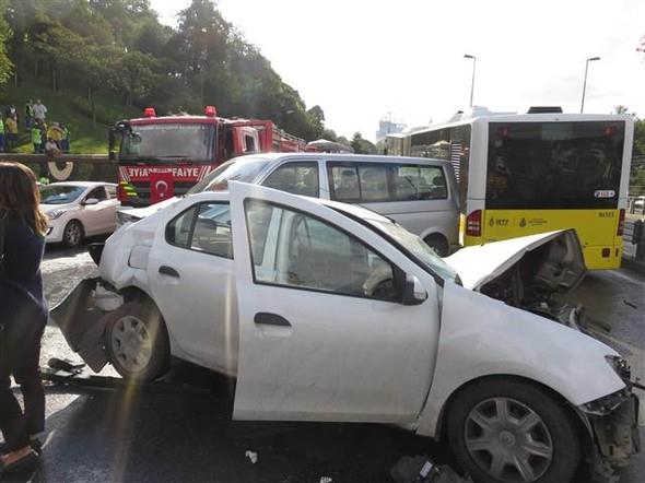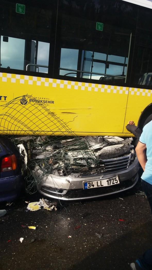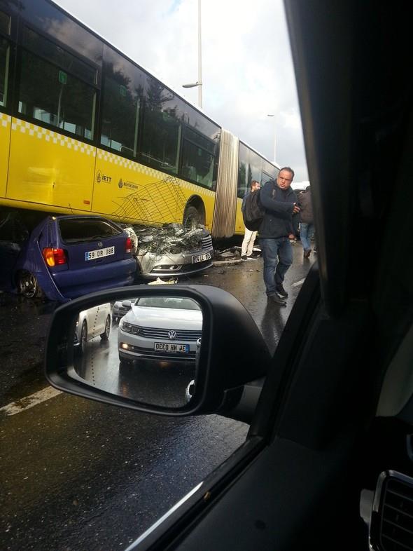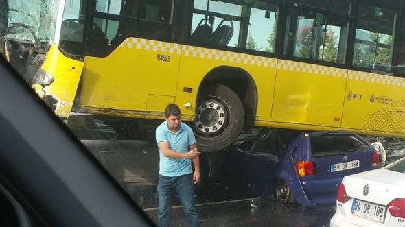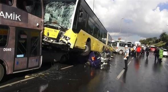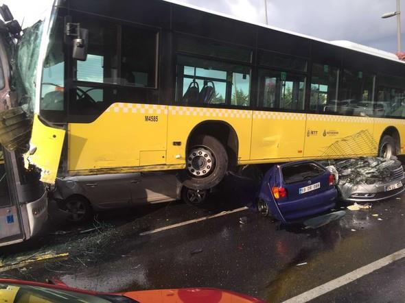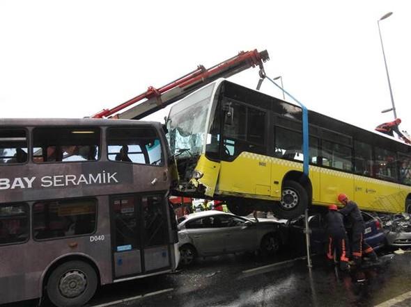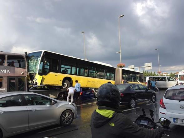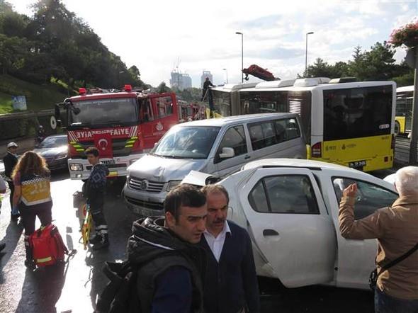 Acıbadem durağında yoldan çıkan metrobüs, önce karşı yönden gelen çift katlı belediye otobüsüne, ardından da diğer araçlara çarparak 4 aracı altına aldı.