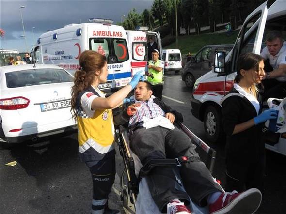 Olay yerine gelen itfaiye ve sağlık ekipleri yaralılara müdahale ederken, 10 kişinin yaralandığı olayda şans eseri can kaybı yaşanmadı.