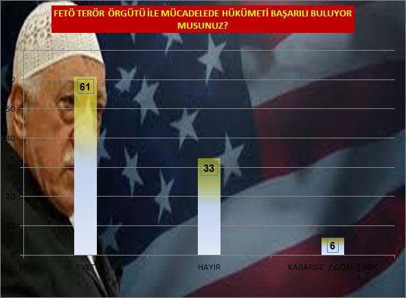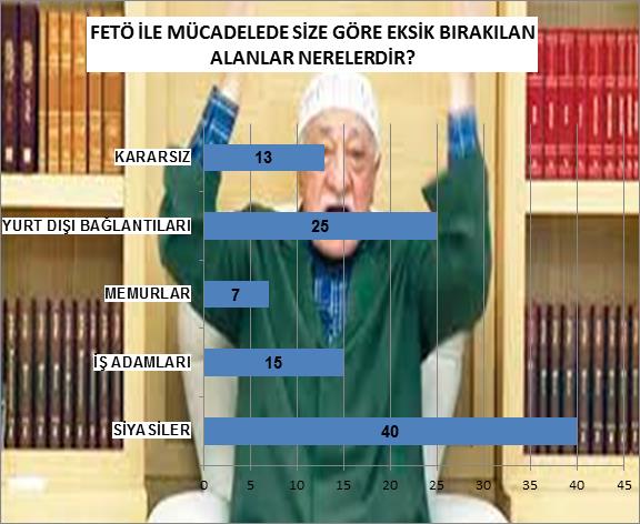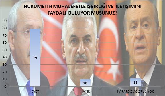 Aşağıdaki soruya verilen yanıtlar Ak Parti'nin 15 Temmuz darbe girişimi sonrası ağustos ve eylül aylarında yakaladığı yükselme eğiliminin tersine dönmeye başladığını göstermesi bakımından önemlidir. Zira MHP' de Yenikapı Ruhunun pozitif anlamda işe yaradığı CHP'de de küçük çaplı bir kıpırdanma dikkat çekmektedir. Bu sonuçlar Ak Parti ve CHP açısından 1 Kasım sonuçları ile neredeyse özdeşleşmiş; MHP de dikkat çekici bir yükseliş ivmesine, HDP' nin ise artık baraj altı konusunda istikrarlı bir bantta kaldığını göstermektedir