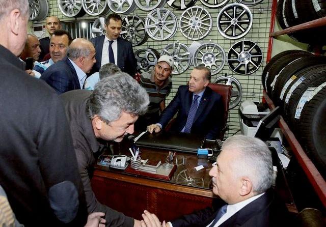 Cumhurbaşkanı Recep Tayyip Erdoğan ve Başbakan Binali Yıldırım, geçtiğimiz gün İskitler'de araç lastiği satan esnafı ziyaret etti.
