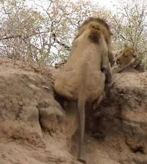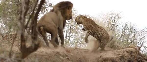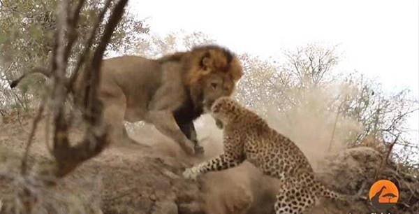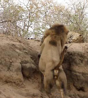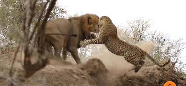 Erkek aslanın, gözüne kestirdiği bir leopara saldırma anları safariye çıkan turistler tarafından kaydedildi.