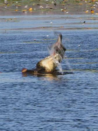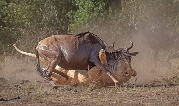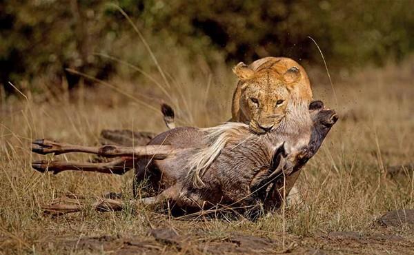 Dişi aslan yakaladığı antilobu adeta havalandırıp yere indirdi. Bütün bu anlar 55 yaşındaki İngiliz fotoğrafçı Andy Howe tarafından kameraya yakalandı.