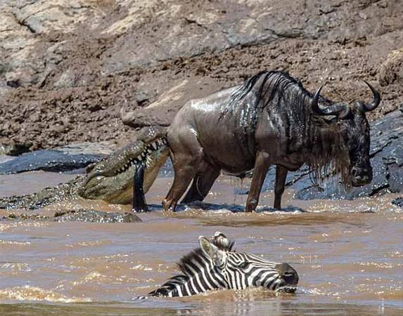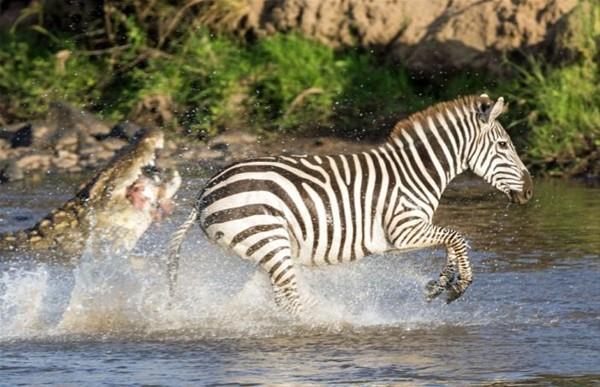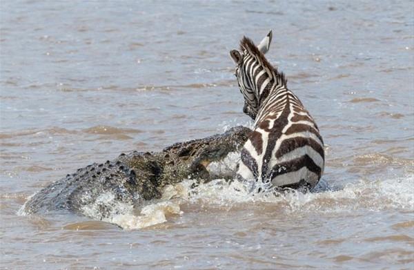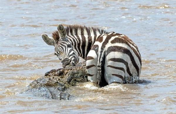 Timsah tarafından yakalanan zebra, av olmak yerine timsaha direndi ve elinden kurtulmayı başardı.