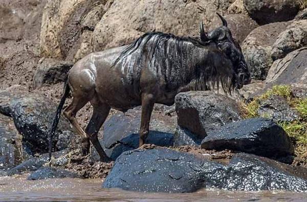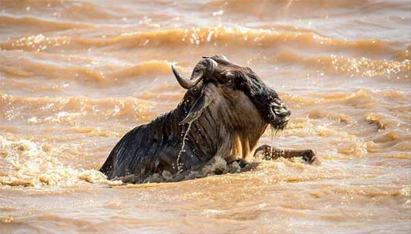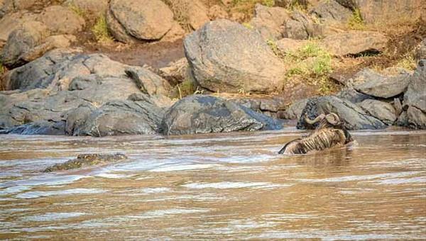 Tanzanya ve Kenya arasında Mara Nehri'ni geçmeye çalışan antilop timsaha yem olmaktan son anda kurtuldu.