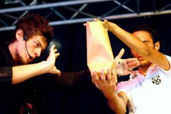 Ardından bir izleyiciye bir gazete verdi. Gazetenin bir sayfasını seçip parçalamasını istedi. Gazete küçük parçalara ayrılınca bir parça seçtirdi. O parçadan da bir kelime tutmasını istedi.