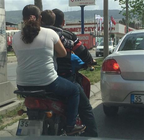 Seyhan ilçesi, D-400 Karayolu Trafik Kavşağında, trafiğin yoğun olduğu sabah saatlerinde kucağında ve önünde 2 küçük çocukla bisiklete binen ve tek eliyle bisiklet süren bir sürücü, görenleri şaşkına çevirdi.