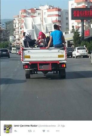 Bursa'da, üstü açık kamyonete yüklenen eşyaların üzerine oturan gencin yaptığı tehlikeli yolculuk, görenleri korkuttu. Arkasında, 'Anamın duası, babamın gölgesi yeter' yazılı kamyonete yüklenen eşyaların üzerine oturan 17-18 yaşındaki bir kişinin adeta ölüme meydan okurcasına yaptığı yolcululuğu görenler, "İnsan hayatı bu kadar da basit olamaz. Birileri, hem tehlikeli yolculuk yaptırıyor, hem de o aracın arkasına, 'Annemin duası, babamın gölgesi yeter" diye yazıyor. Ve o araç şehir içersinde yük taşıyor" diye konuştu. DHA