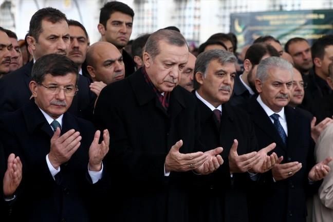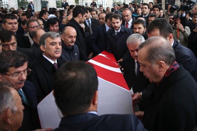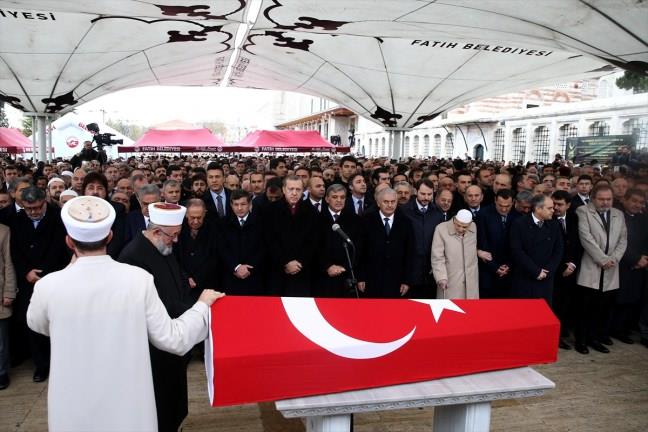 Namaza katılan Cumhurbaşkanı Recep Tayyip Erdoğan ile eski Başbakan ve AK Parti Konya Milletvekili Ahmet Davutoğlu, cenazeyi birlikte omuzladı