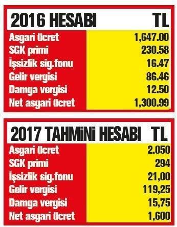 Geçen seneki komisyonda da asgari ücret yüzde 30 artırılarak 1.300 lira net, 1.647 lira da brüt rakama yükseltilmişti.