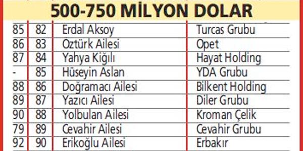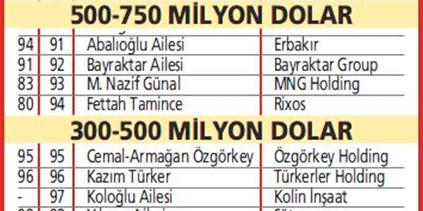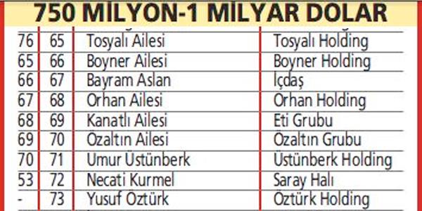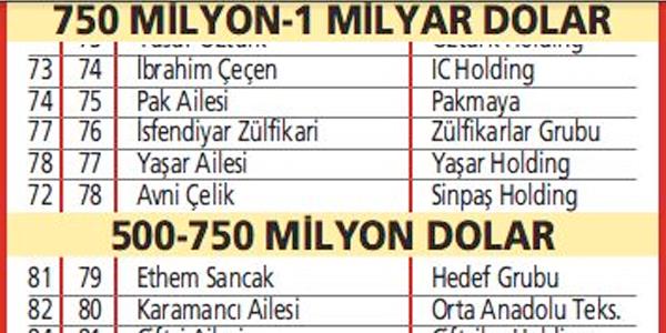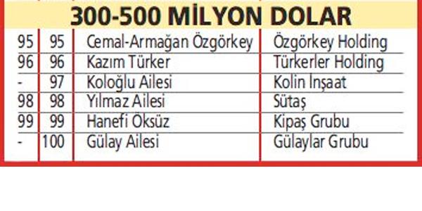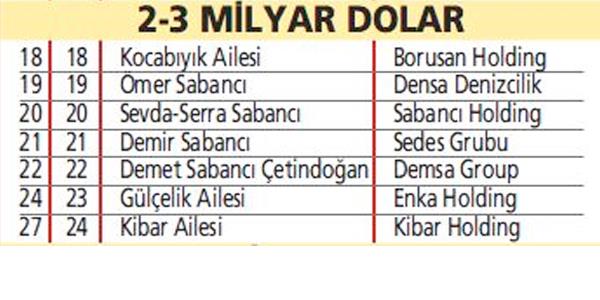 Türkiye’nin en zengin 100 ailesi belli oldu