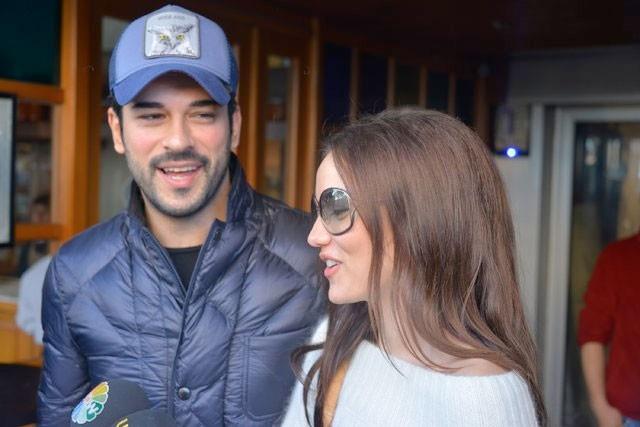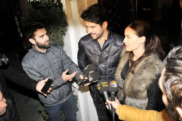 Çıkışta mutlulukları yüzlerinden okunan ikiliden Özçivit, Evcen’e yöneltilen “Sevgilinize ne aldınız?” sorusuna araya girerek “Çok özel bir hediye” diye cevap verdi.