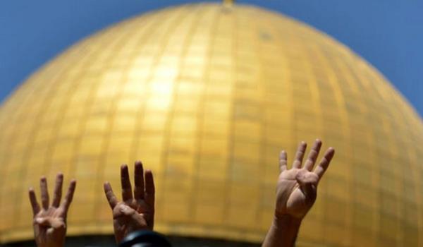 Meydanlarda toplanan göstericiler, elleriyle dört işareti yaparak Rabiatul Adeviyye'ye atıfta bulundular.