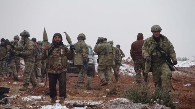 ELVERİŞSİZ HAVA KOŞULLARINA RAĞMEN OPERASYON TÜM HIZIYLA DEVAM EDİYOR Türk ordusunun bölgede kontrolü ele alma çabaları elverişsiz hava koşullarına rağmen sürüyor. Yapılan bütün askeri operasyonlar Türk güçlerinin kontörlünde gerçekleştirilirken muhalifler yalnızca destek veriyor.