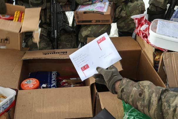 Öğrencilerin anlamlı hediyeleri karşısında duygulanan askerler...
