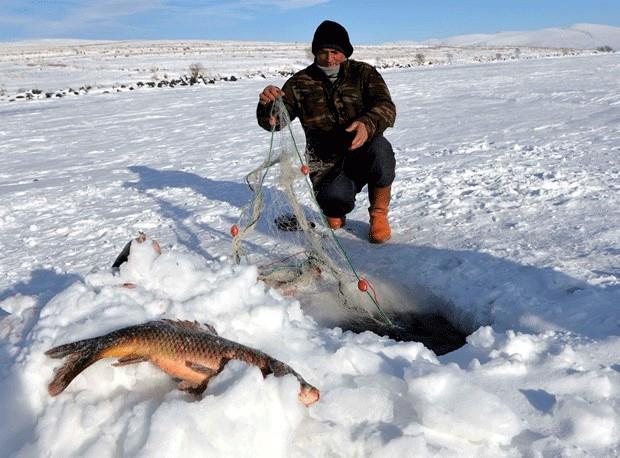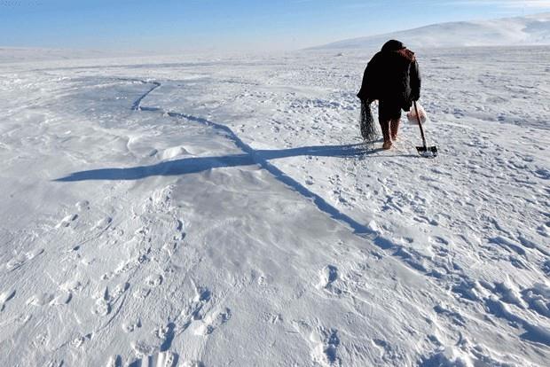 Donmuş Gölde Balık Tutuyorlar Film Gibi Kareler...