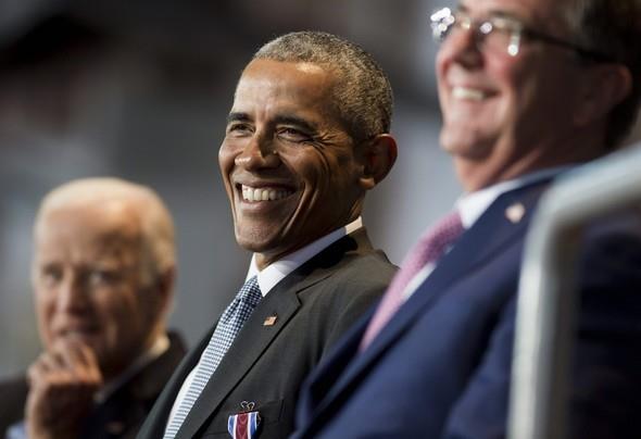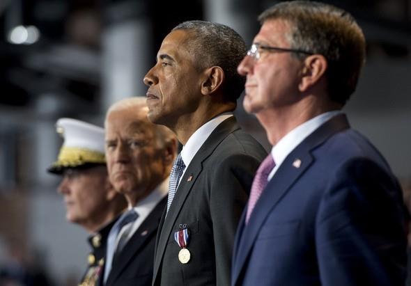 Bakan Carter, Obama'ya konuşması öncesi ülkeye hizmetlerinden dolayı ABD ordusu adına madalya verdi.