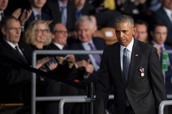 ABD'de başkanlık koltuğunu 20 Ocak'ta Donald Trump'a devredecek olan Barack Obama’nın ABD ordusuna yaptığı veda konuşması sırasında, merasim kıtasından bir asker bayılarak yere düştü.